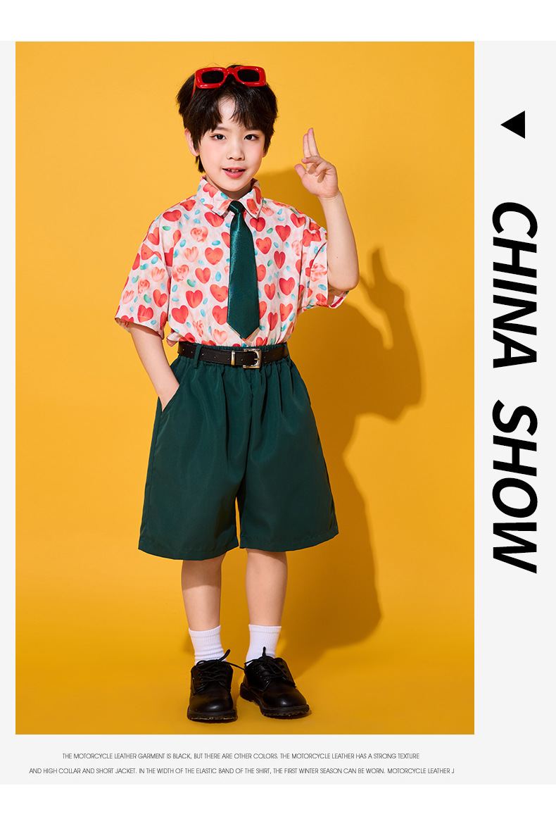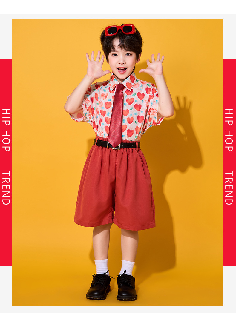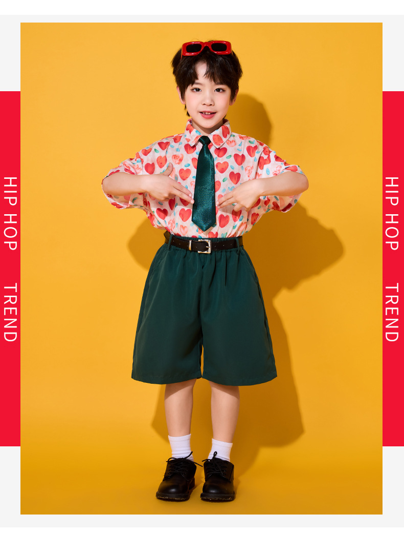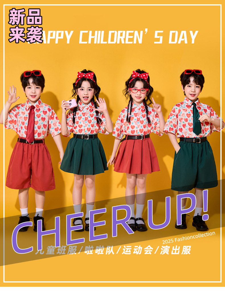 6 월 1 일 어린이를위한 어린이 치어 리더 세트, 유치원을위한 초등학생 스포츠 세트 레트로 사랑 홍콩 스타일 셔츠 세트스토어 가기