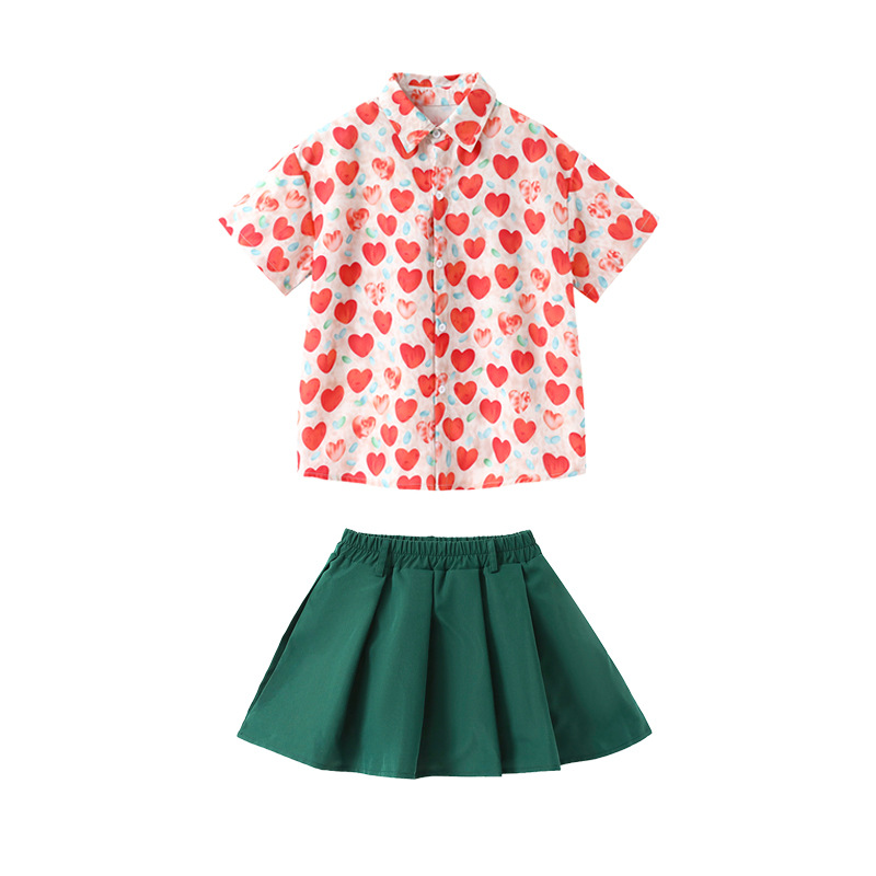 • 레드 하트 셔츠 + 다크 그린 스커트