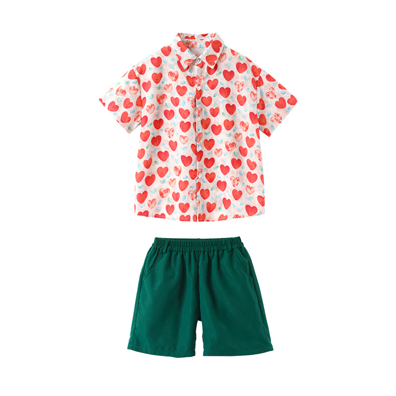 • 레드 하트 셔츠 + 다크 그린 팬츠