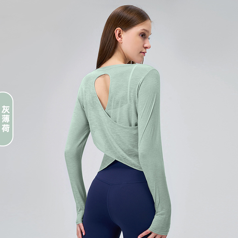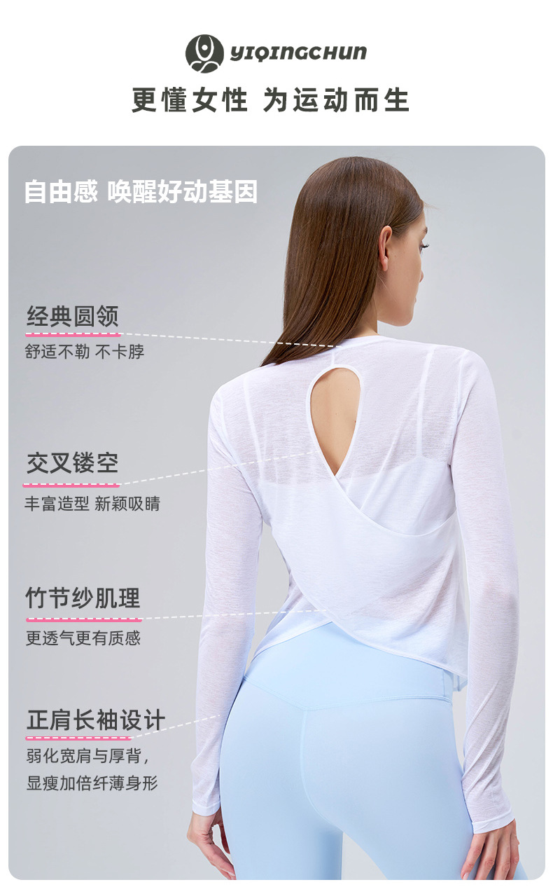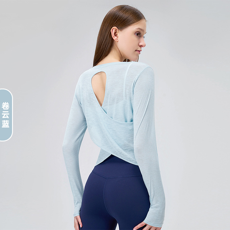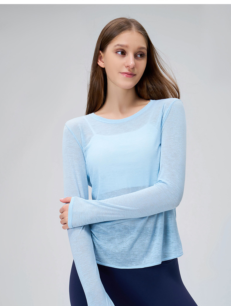 대나무 원사 여름 스포츠 긴팔 요가 의류 여성 탑 하이 엔드 얇은 조끼 통기성 피트니스 스포츠 커버 업