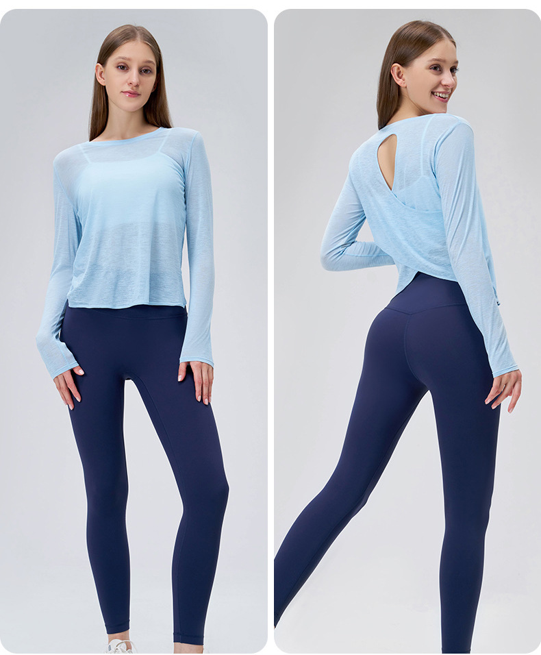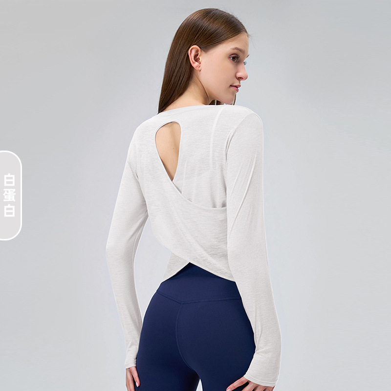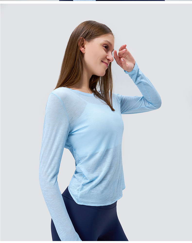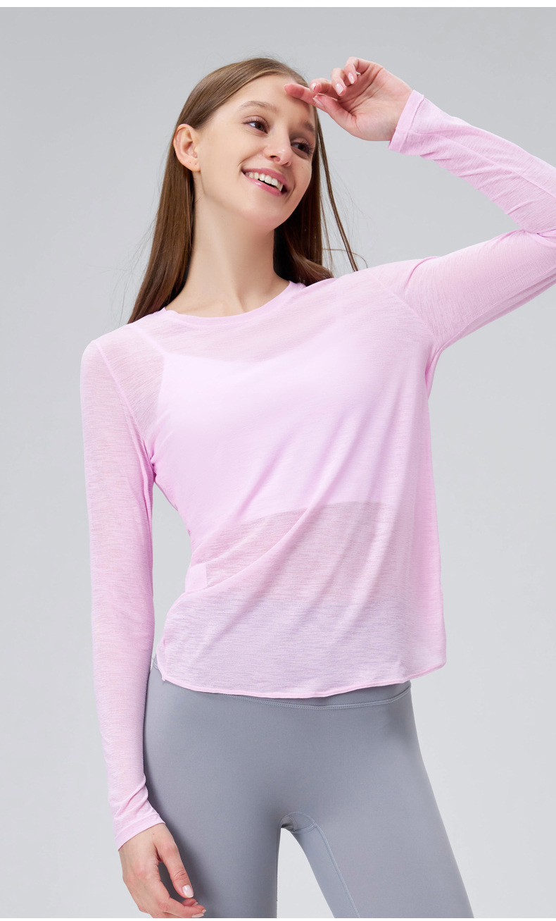 대나무 원사 여름 스포츠 긴팔 요가 의류 여성 탑 하이 엔드 얇은 조끼 통기성 피트니스 스포츠 커버 업