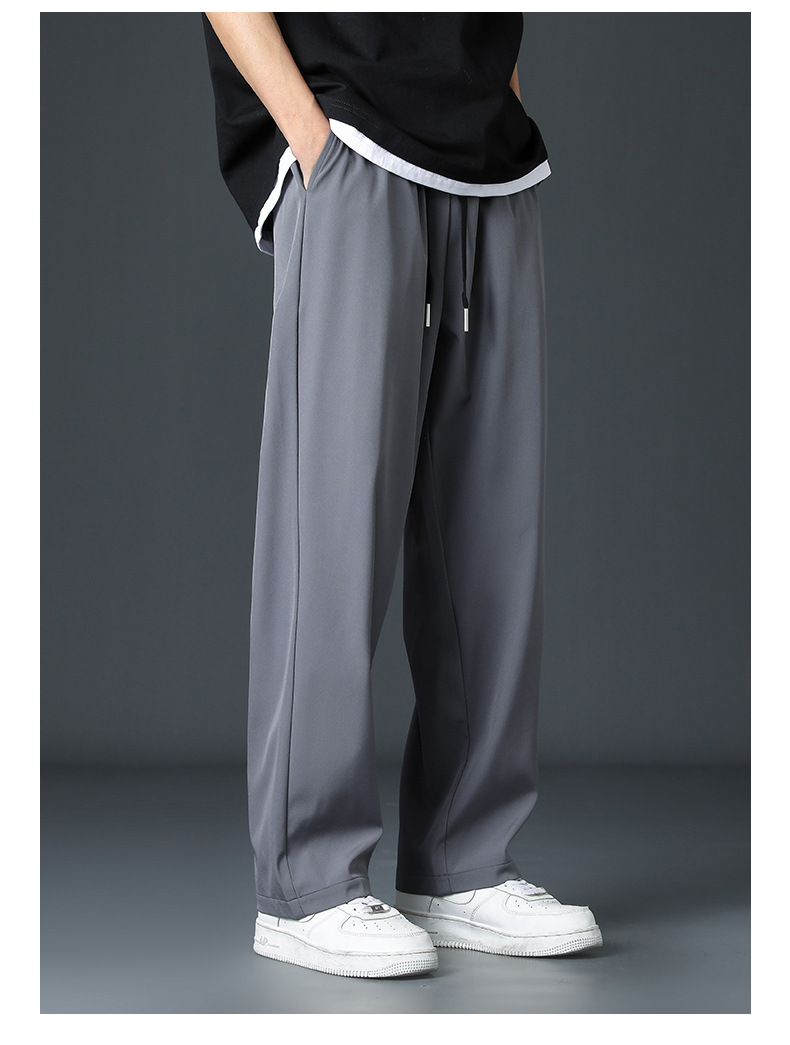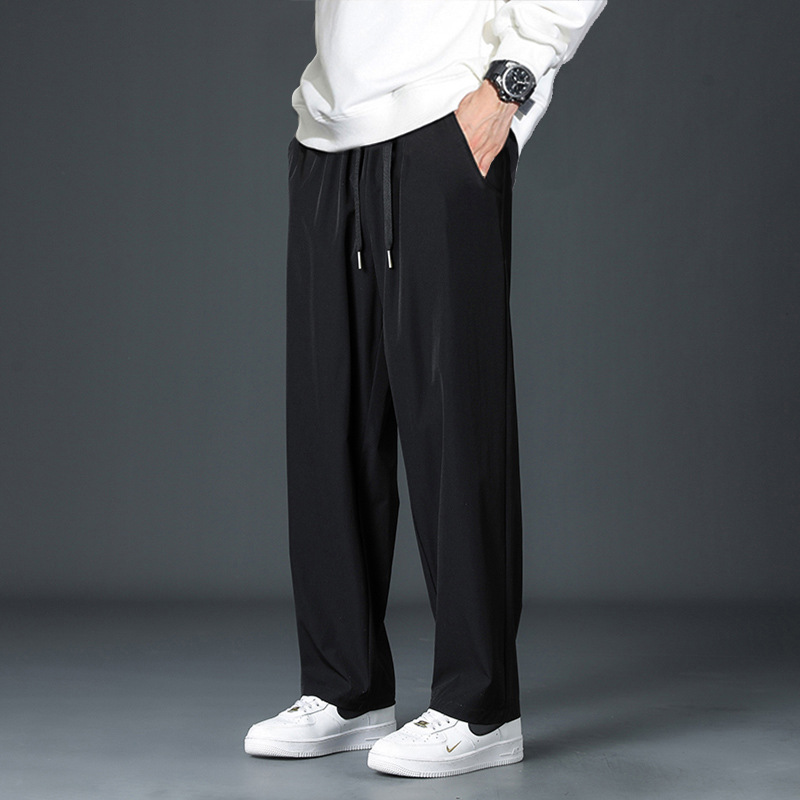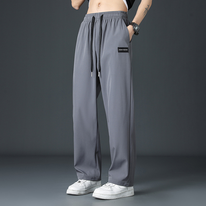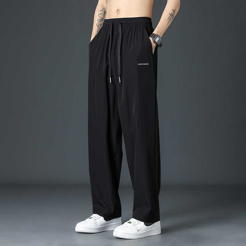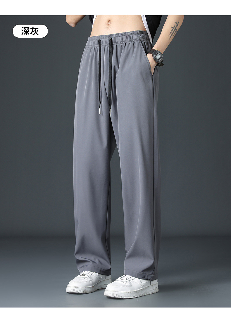 2025 새로운 아이스 실크 바지 남자 여름 얇은 하이 스트리트 투약 스트레이트 레그 와이드 레그 팬츠 여름 스포츠 캐주얼 바지