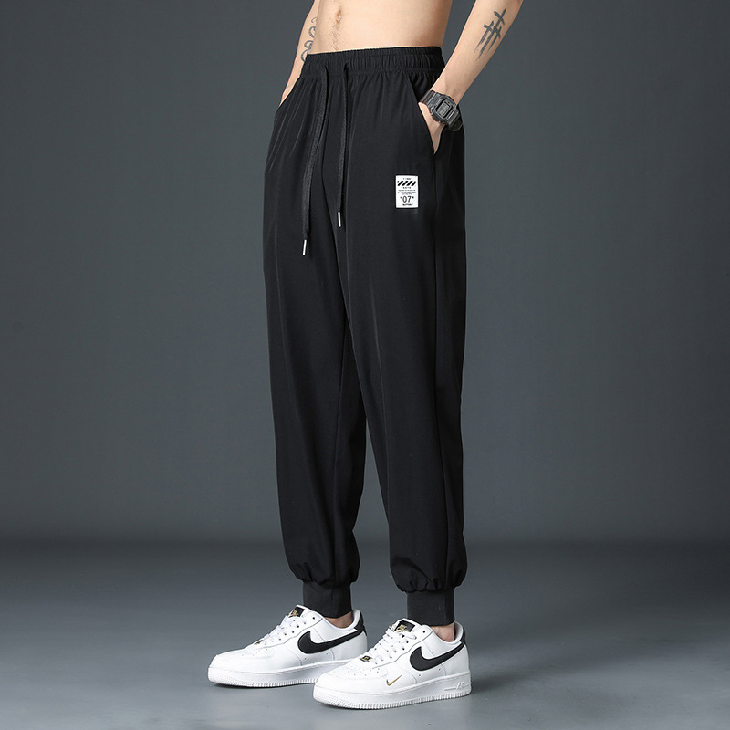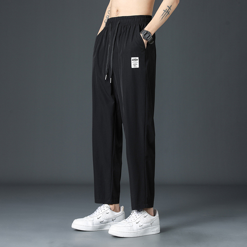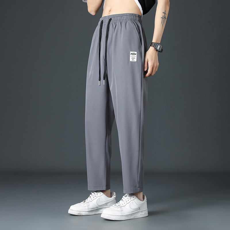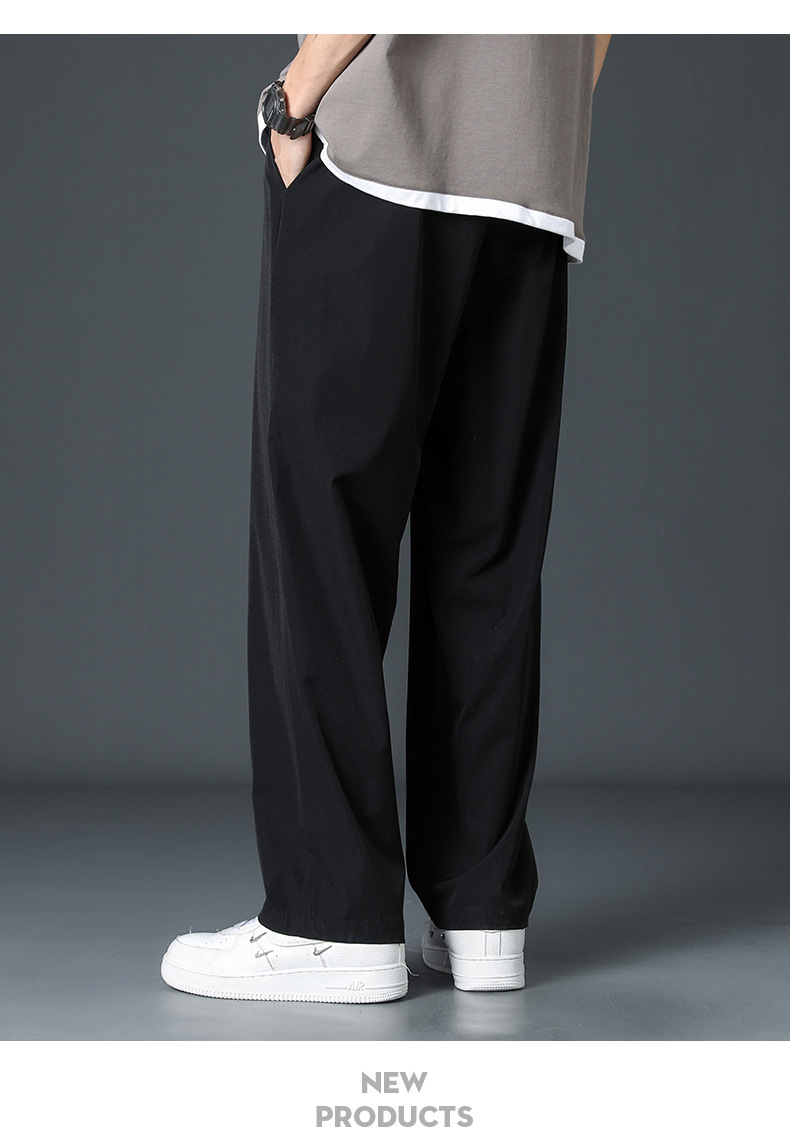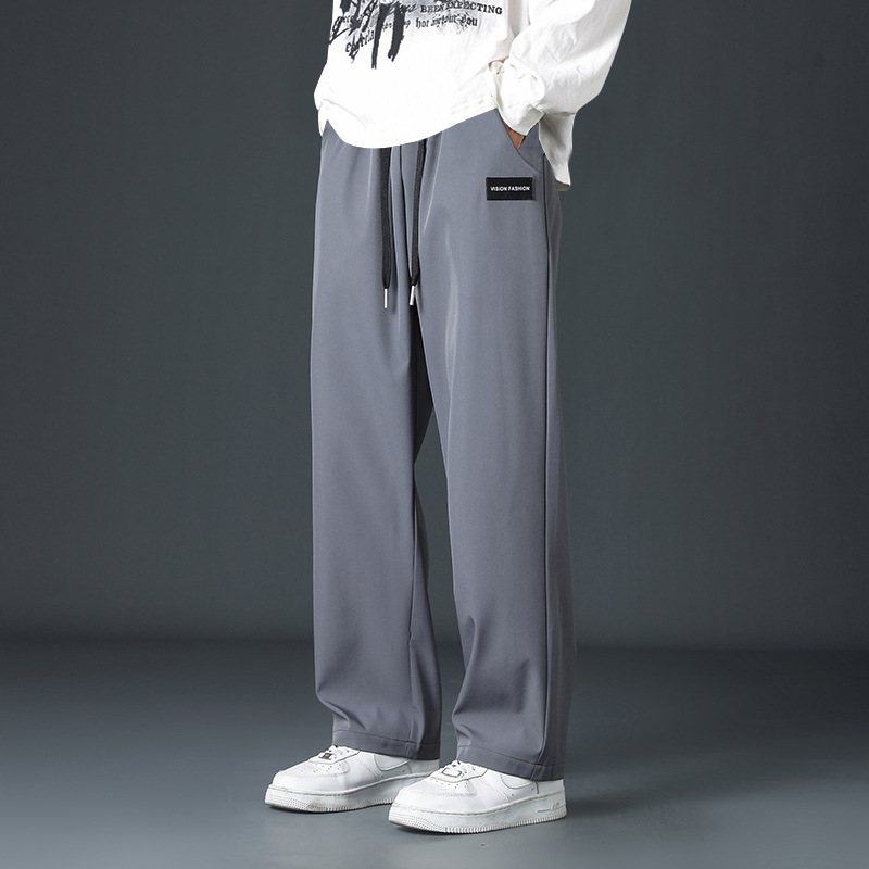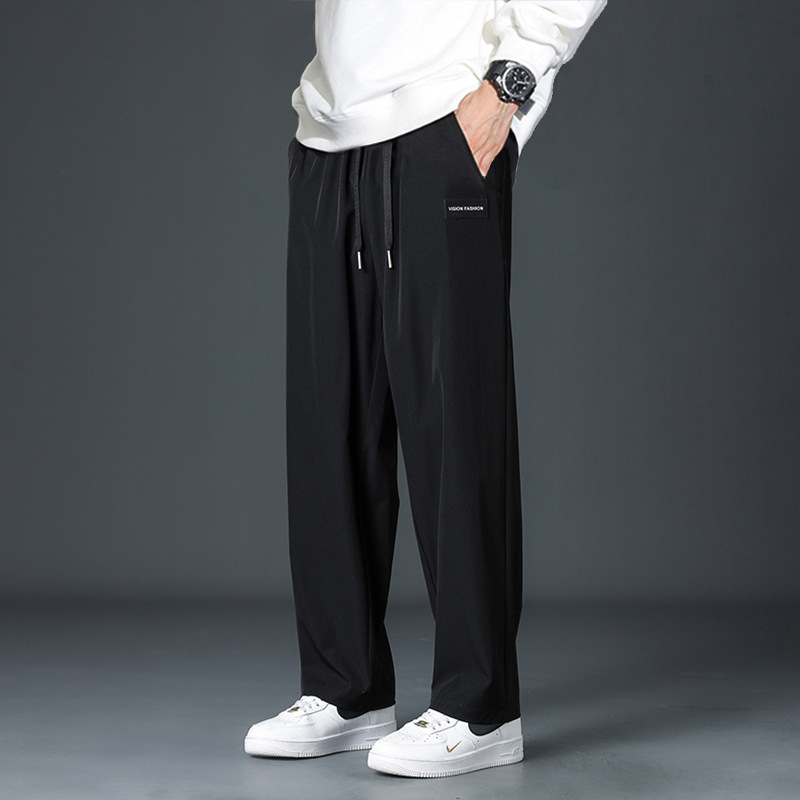 2025 새로운 아이스 실크 바지 남자 여름 얇은 하이 스트리트 투약 스트레이트 레그 와이드 레그 팬츠 여름 스포츠 캐주얼 바지