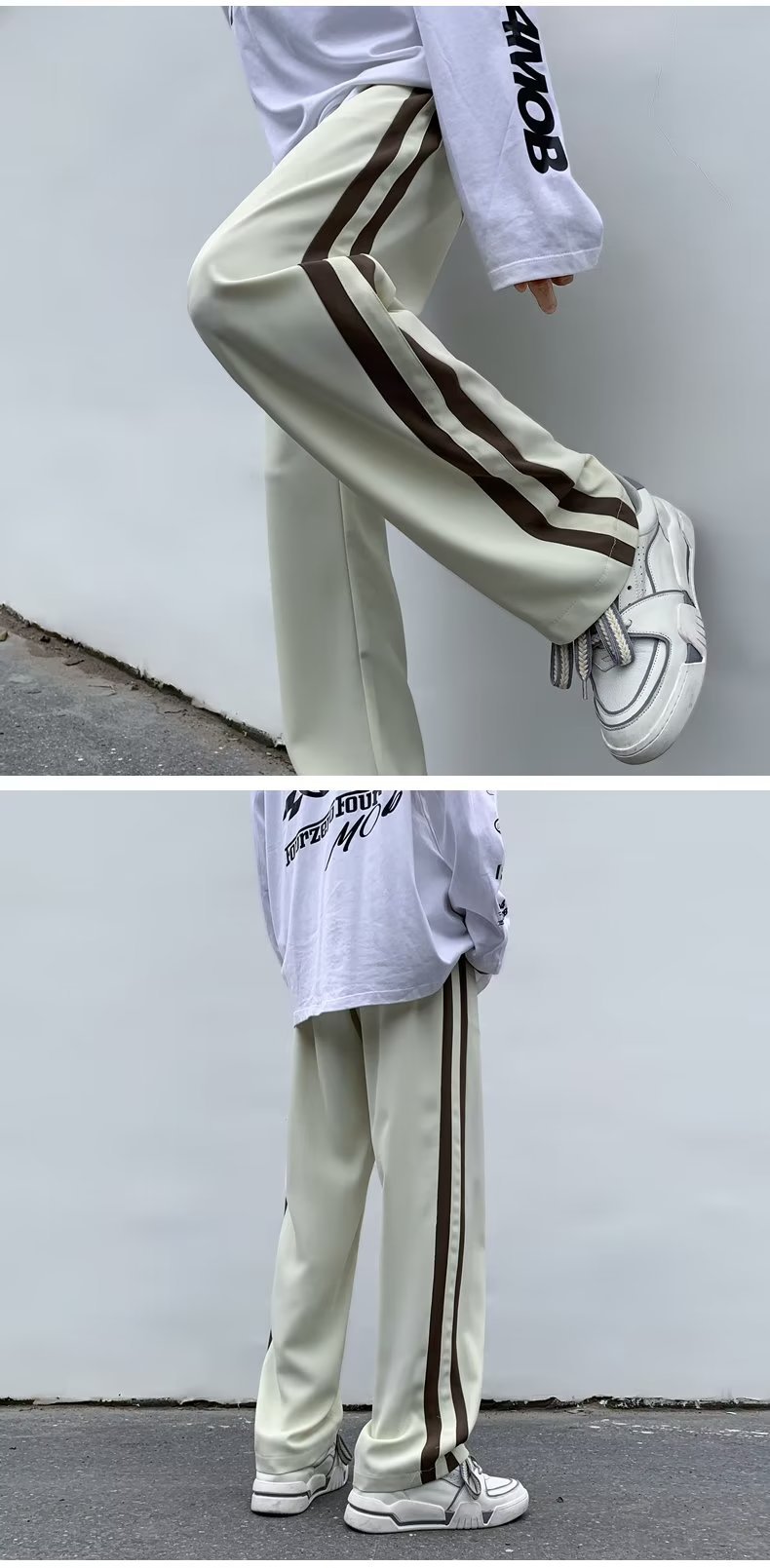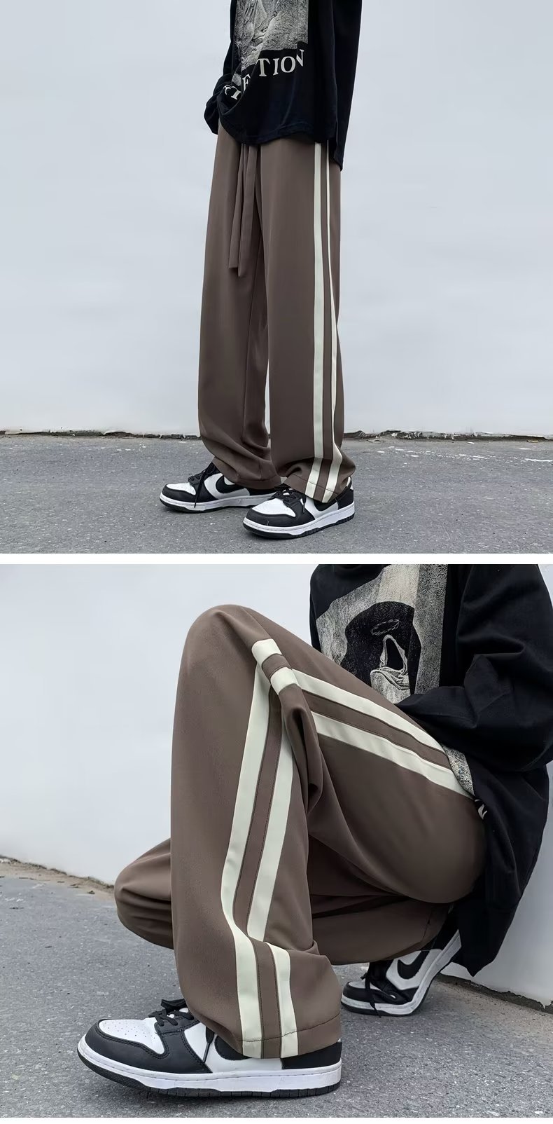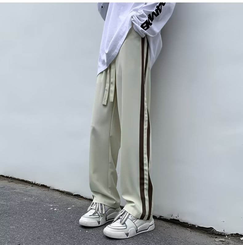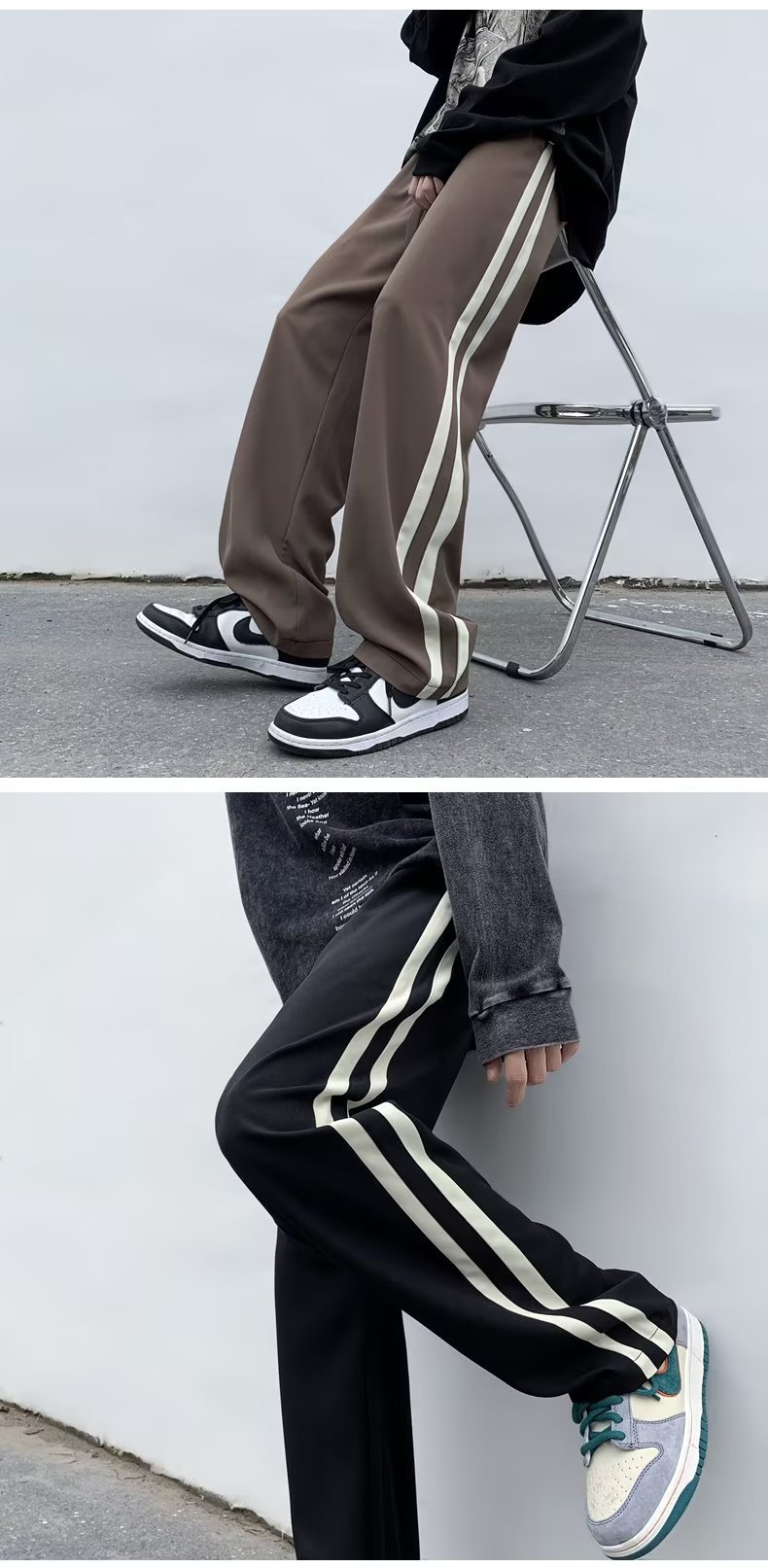 봄과 가을 캐주얼 스트라이프 와이드 레그 바지 남자 느슨한 플러스 사이즈 스트레이트 바지 홍콩 스타일 트렌디 올 매치 스포츠 바지스토어 가기