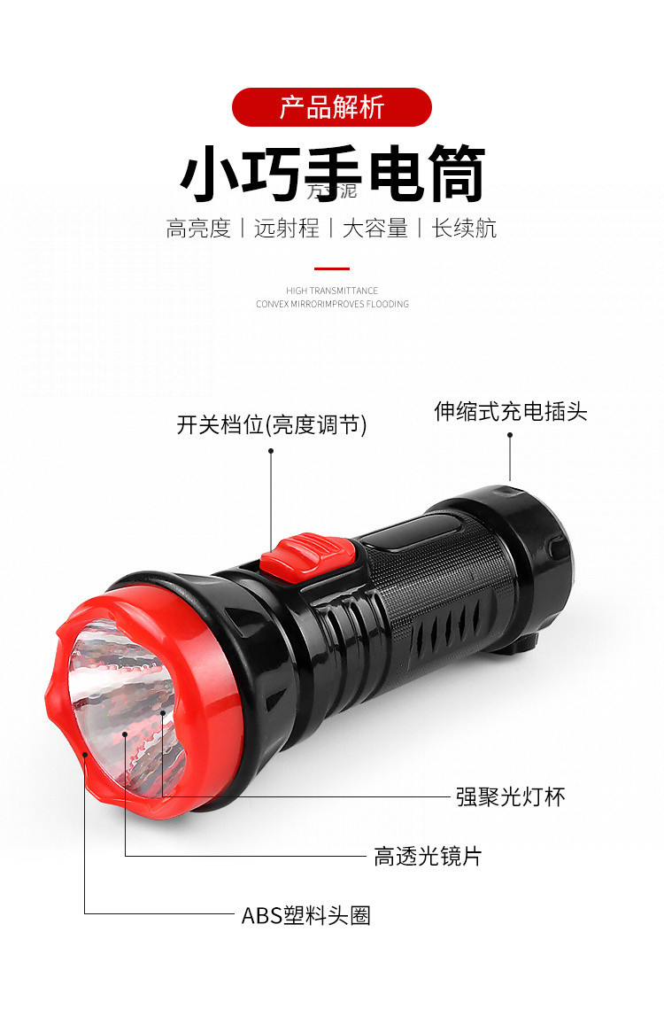 • 17cm 리튬 배터리 손전등 충전식 휴대폰 [1개]