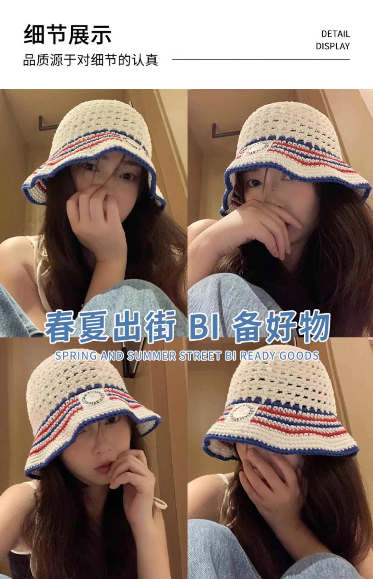 한국식 줄무늬 어부 모자 여자 여름 올매치 중공 통풍 2025 새 햇살 얼굴 보여주는 작은 분지 모자스토어 가기