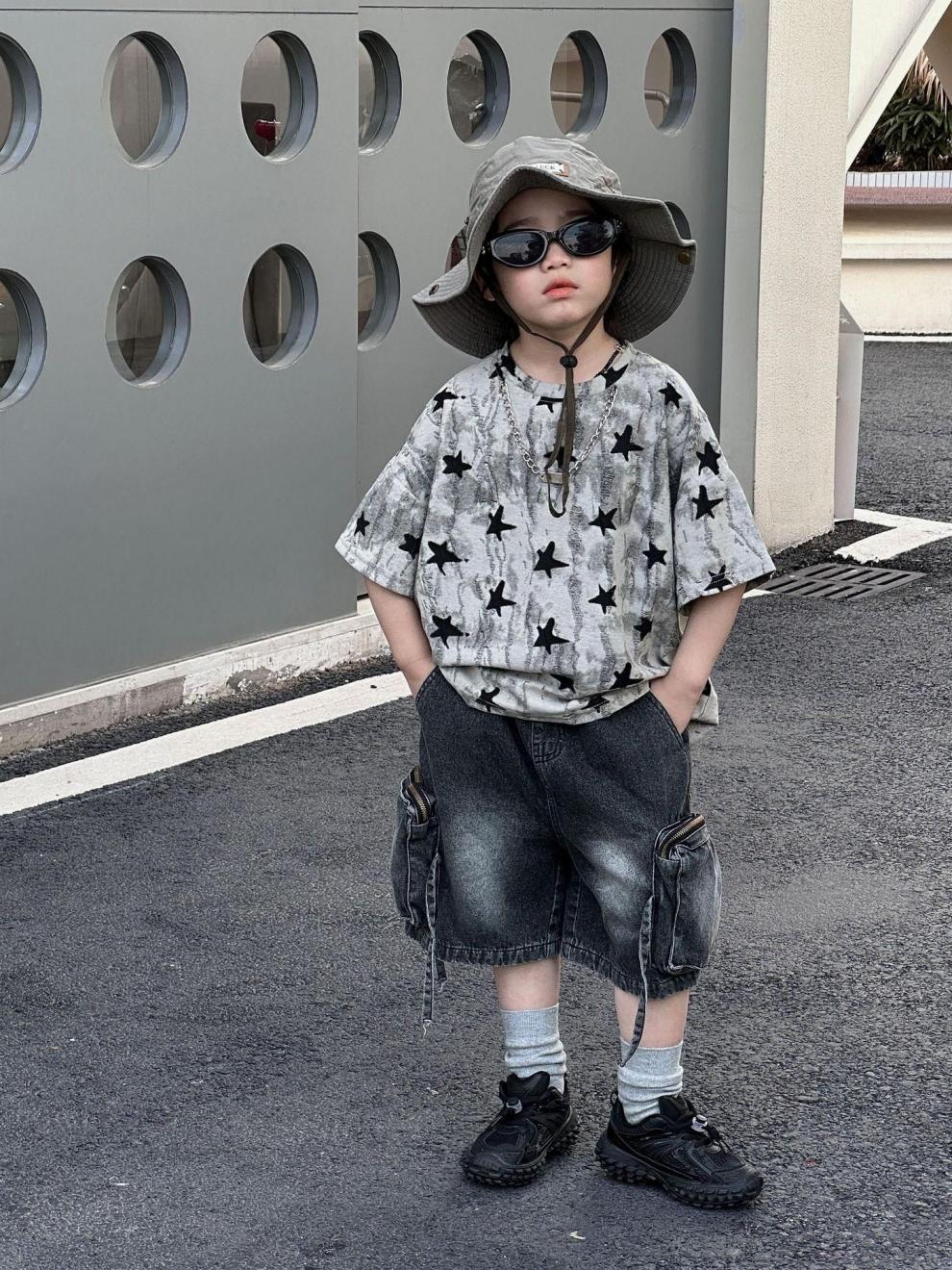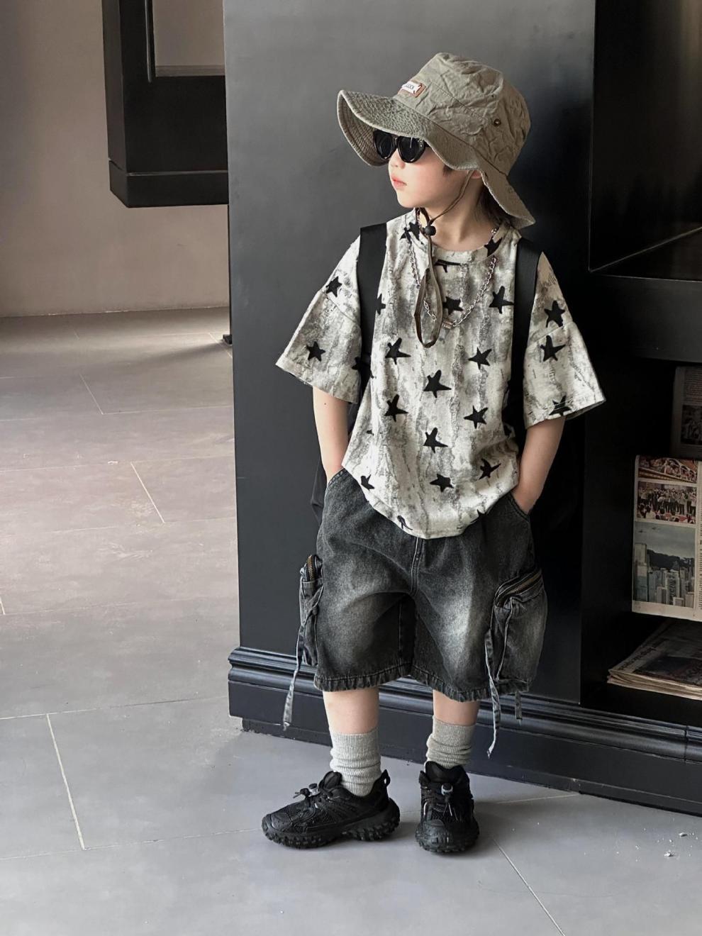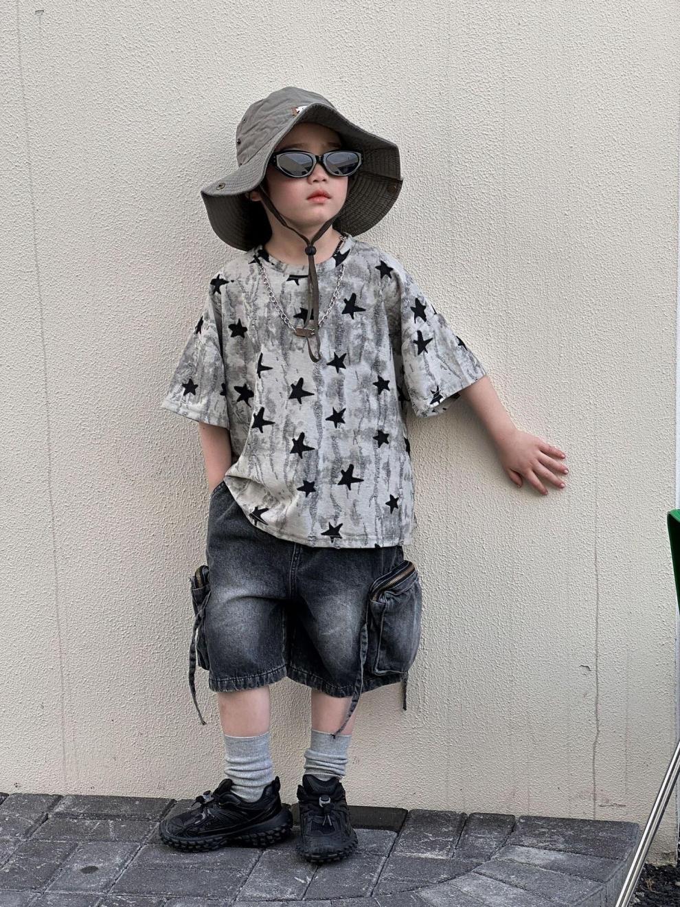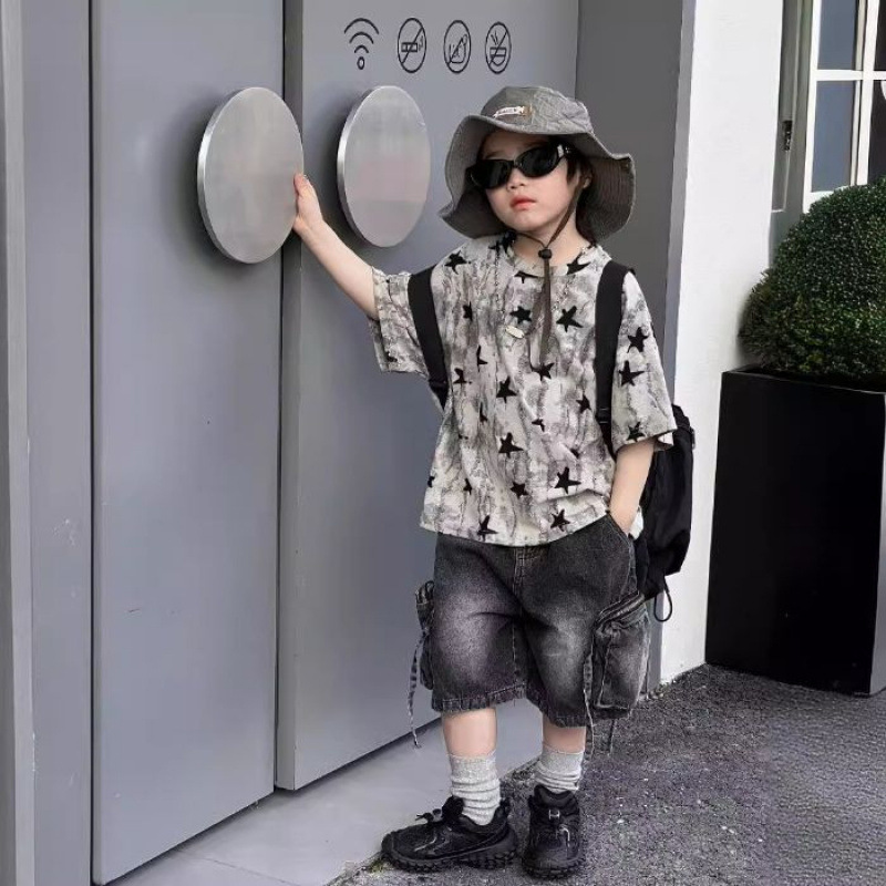 남학생 반팔 티셔츠 패셔너블 아메리칸 스타일 어린이 강아지 핸즈솜 탑 얇은 어린이 반소매 티셔츠 느슨한 한국식 여름 원피스스토어 가기