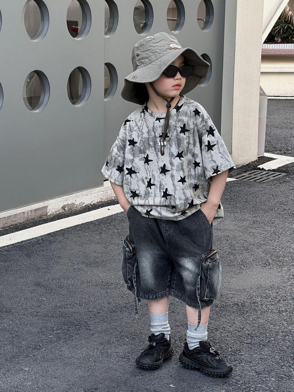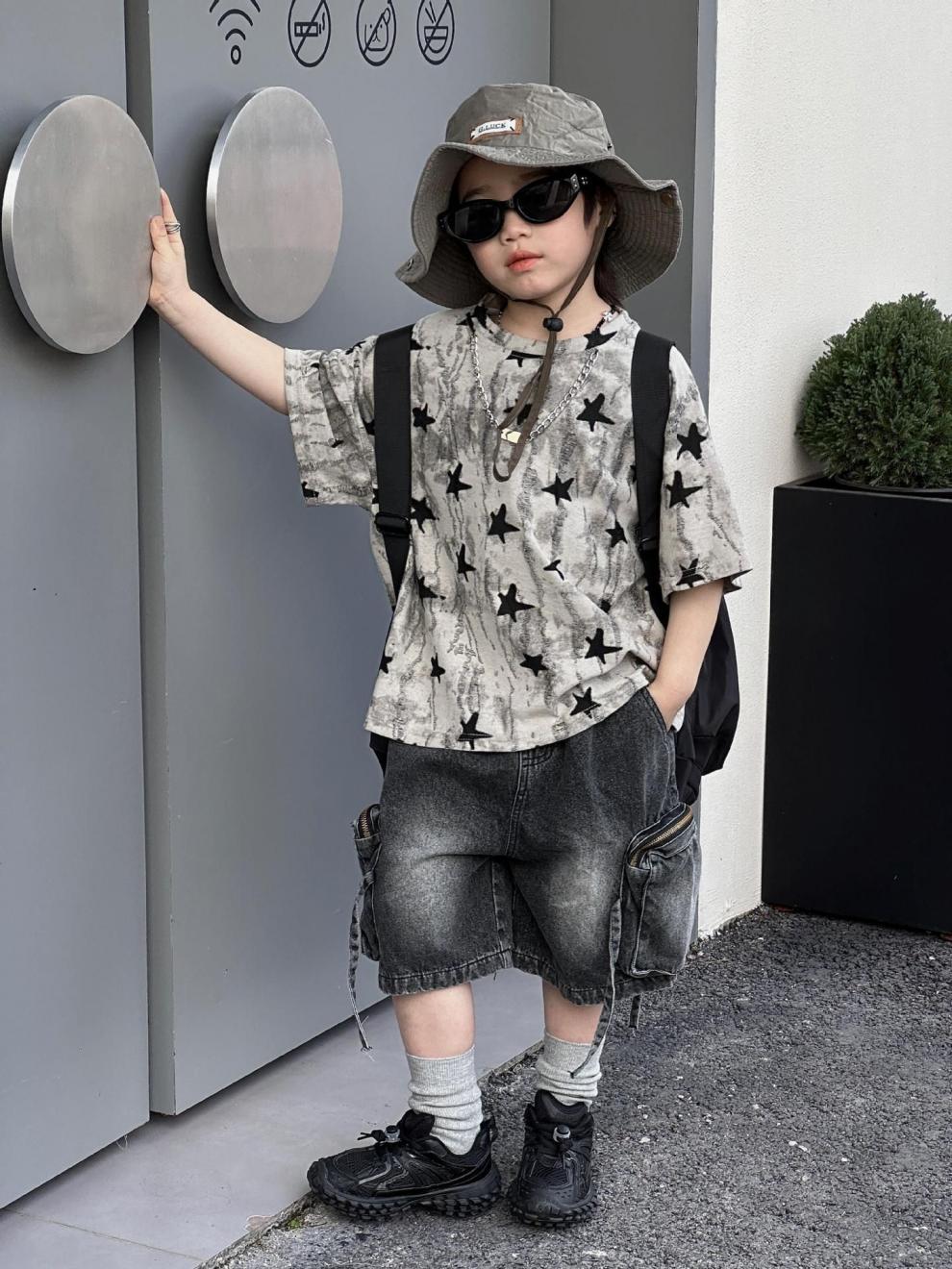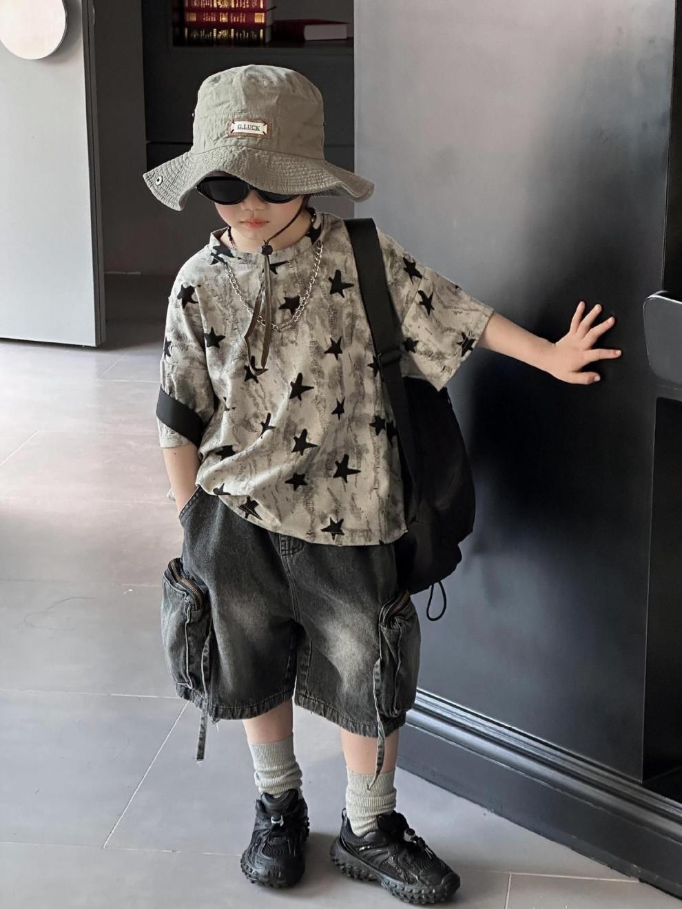 남학생 반팔 티셔츠 패셔너블 아메리칸 스타일 어린이 강아지 핸즈솜 탑 얇은 어린이 반소매 티셔츠 느슨한 한국식 여름 원피스스토어 가기