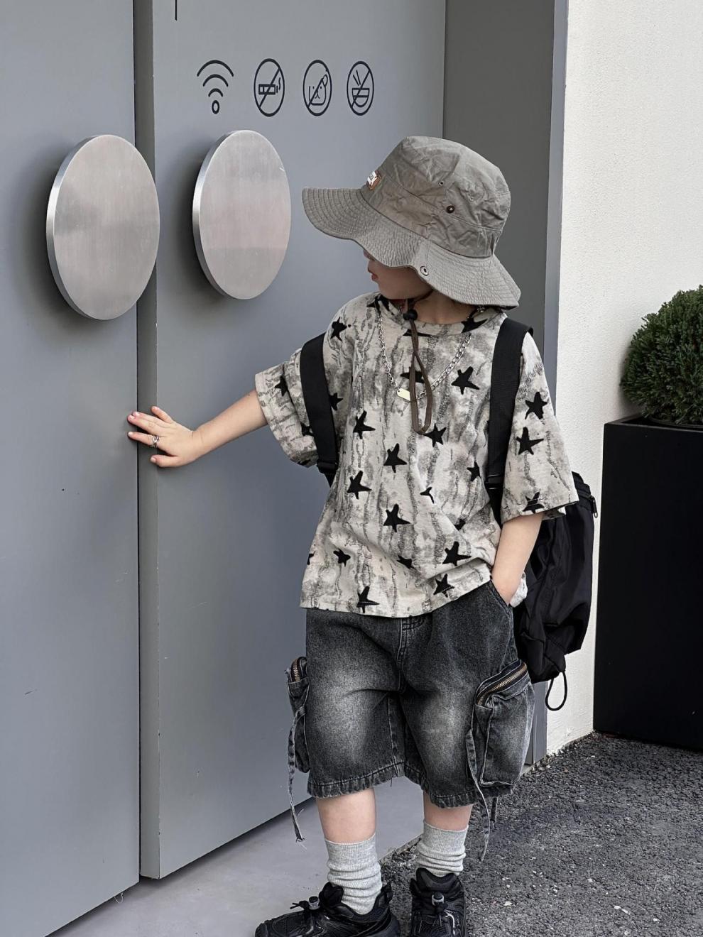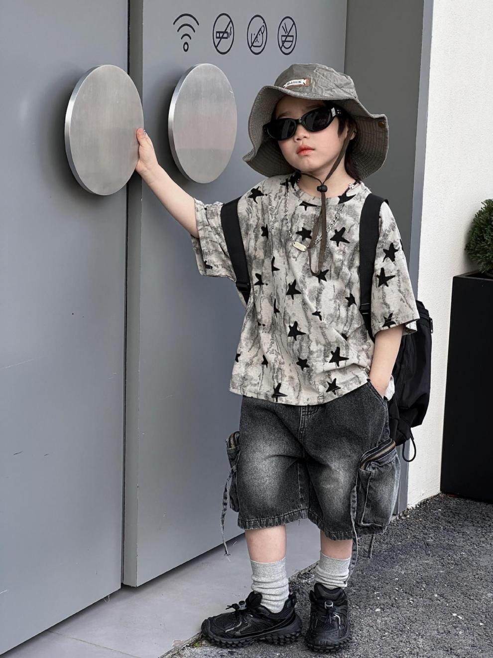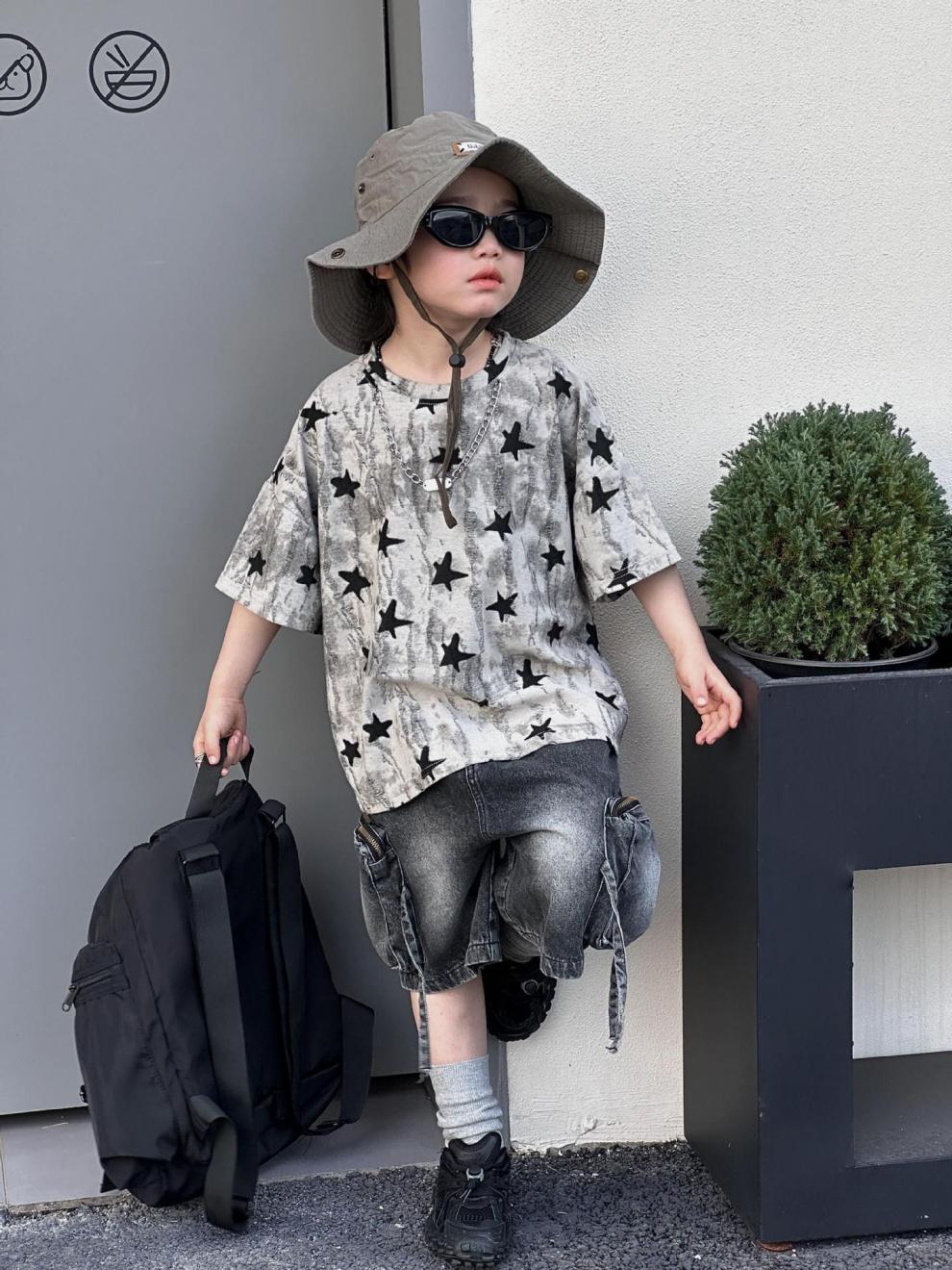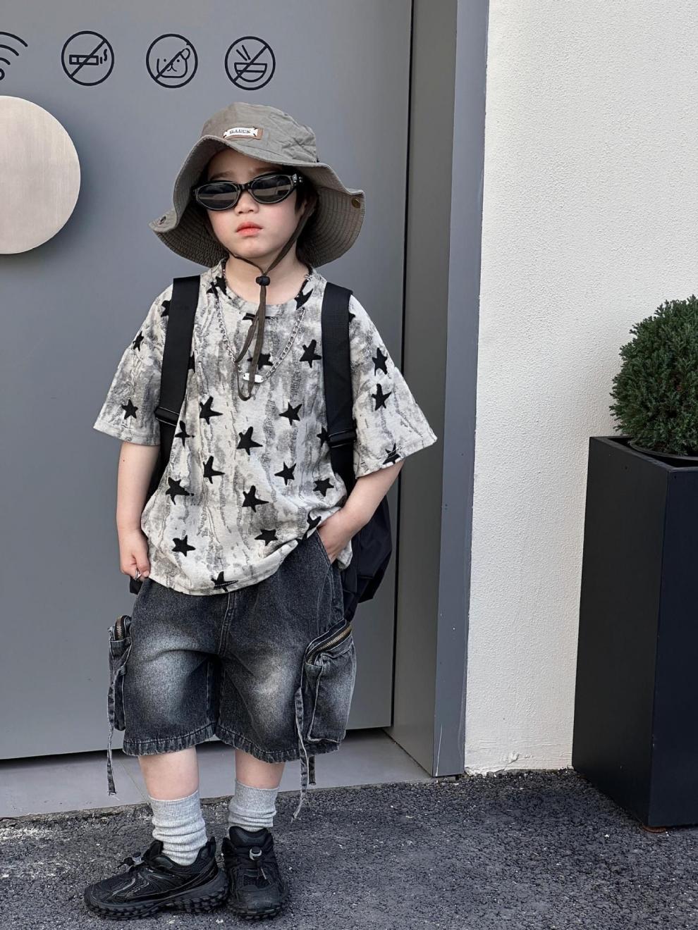 남학생 반팔 티셔츠 패셔너블 아메리칸 스타일 어린이 강아지 핸즈솜 탑 얇은 어린이 반소매 티셔츠 느슨한 한국식 여름 원피스스토어 가기