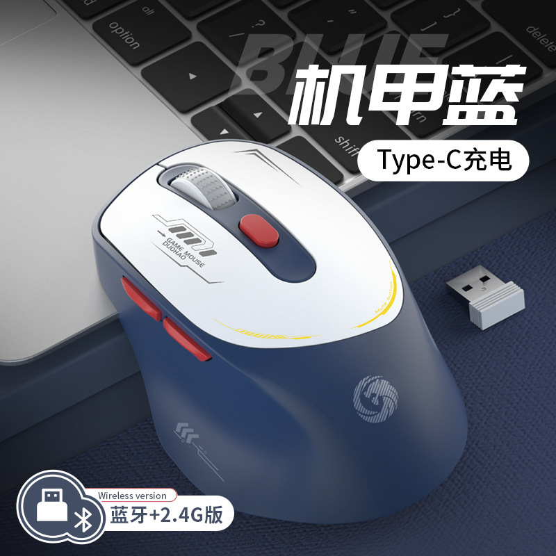 • [2.4g 충전식 모델] 메카 블루 - 무음 버튼 - DPI 조정 - 스마트 슬립 - 그립 - 공식 표준