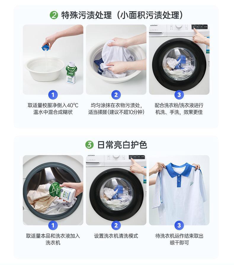 학교 교복 및 학생복 세척제는 땀, 기름, 누런 얼룩을 제거하고 신선하고 밝게 해줍니다.
