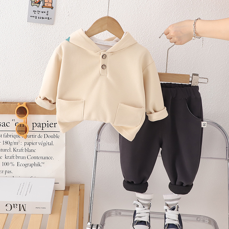소년 가을 의류 세트 2024 새로운 어린이 스타일 후드 긴팔 폴로 셔츠 투피스 세트 아기 봄, 가을 유행 의류스토어 가기