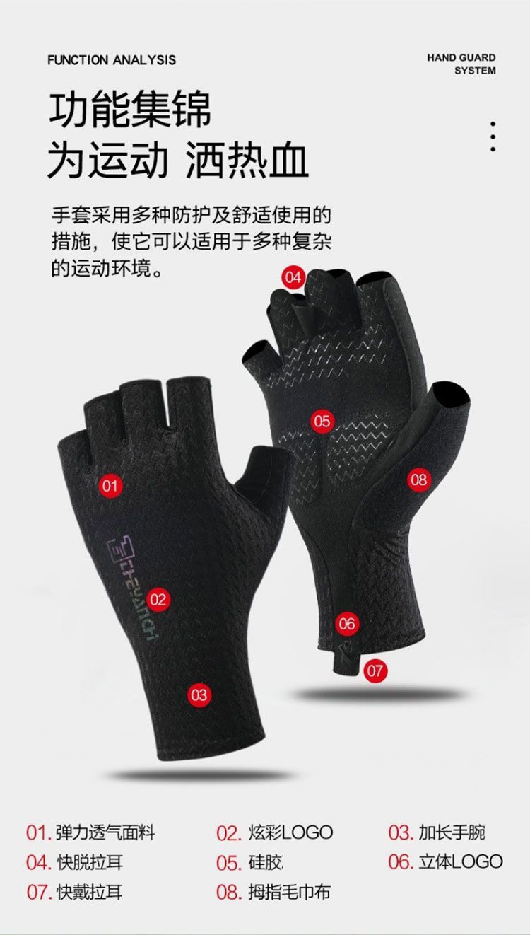 B6Y 남성용 자외선 차단제 반 손가락 장갑 여름 얇은 야외 여름 등산 운전 자외선 방지 얼음 실크 노출 손가락 라이딩스토어 가기