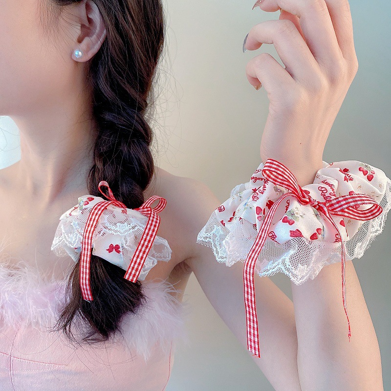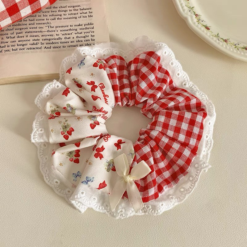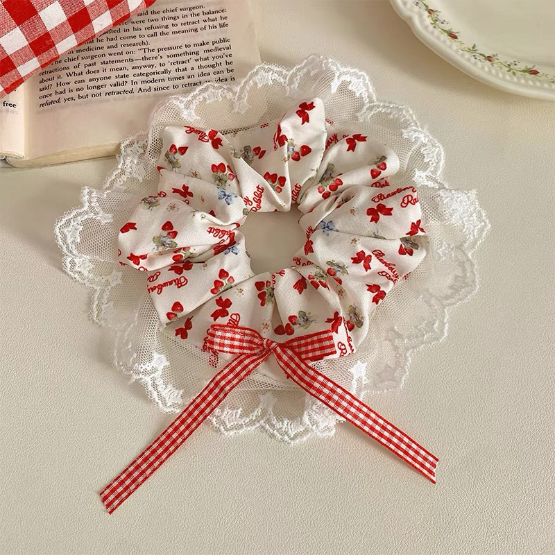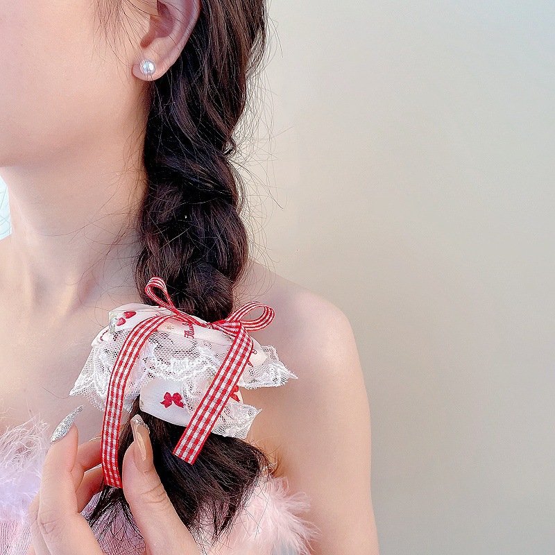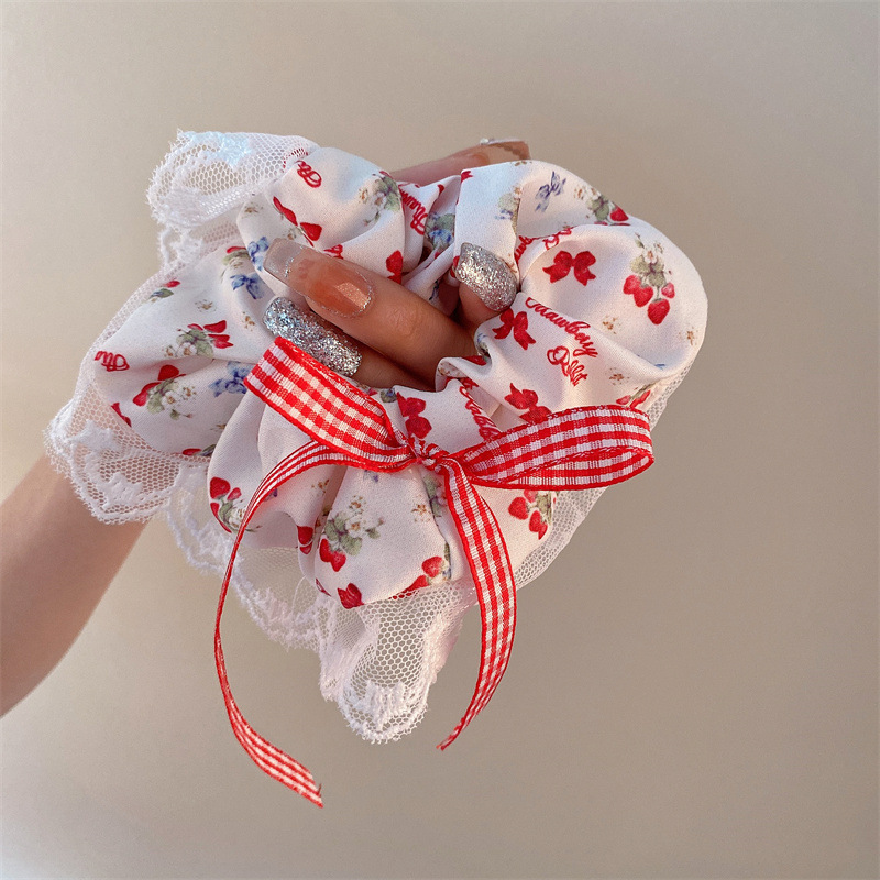 딸기 버블 ~ 레드 레이스 활 대형 내장 헤어 링 여성 하이 스타일 한국 스타일 대형 헤어 로프 헤드 밴드 헤드폰