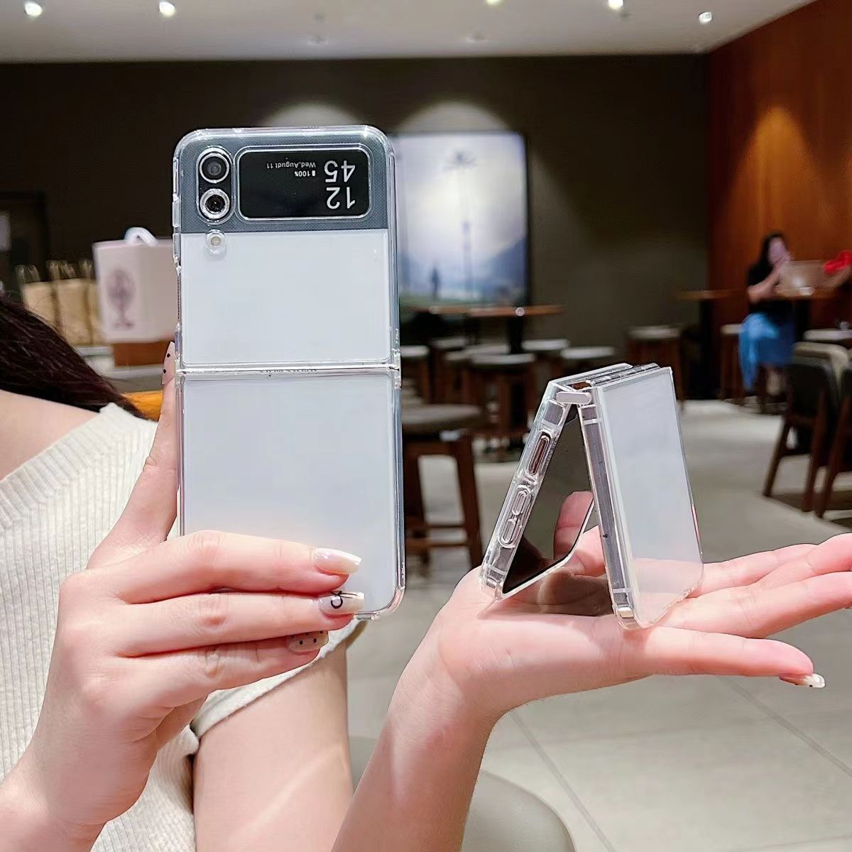 삼성 ZFlip5/6 투명 에어백 접이식 기계 전화 쉘 하드웨어 샤프트 연결 소재 소프트 쉘스토어 가기
