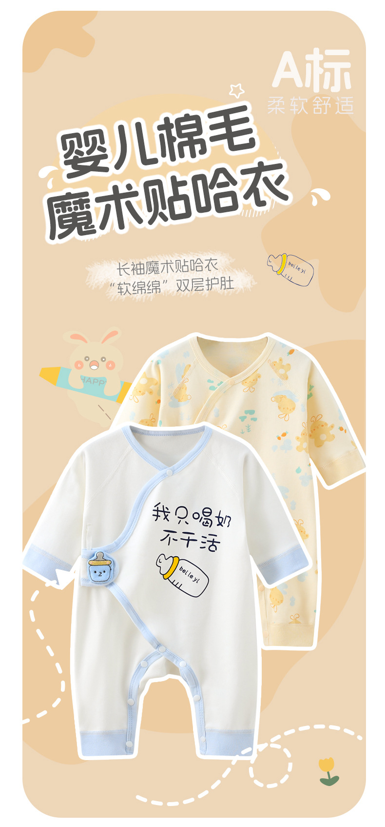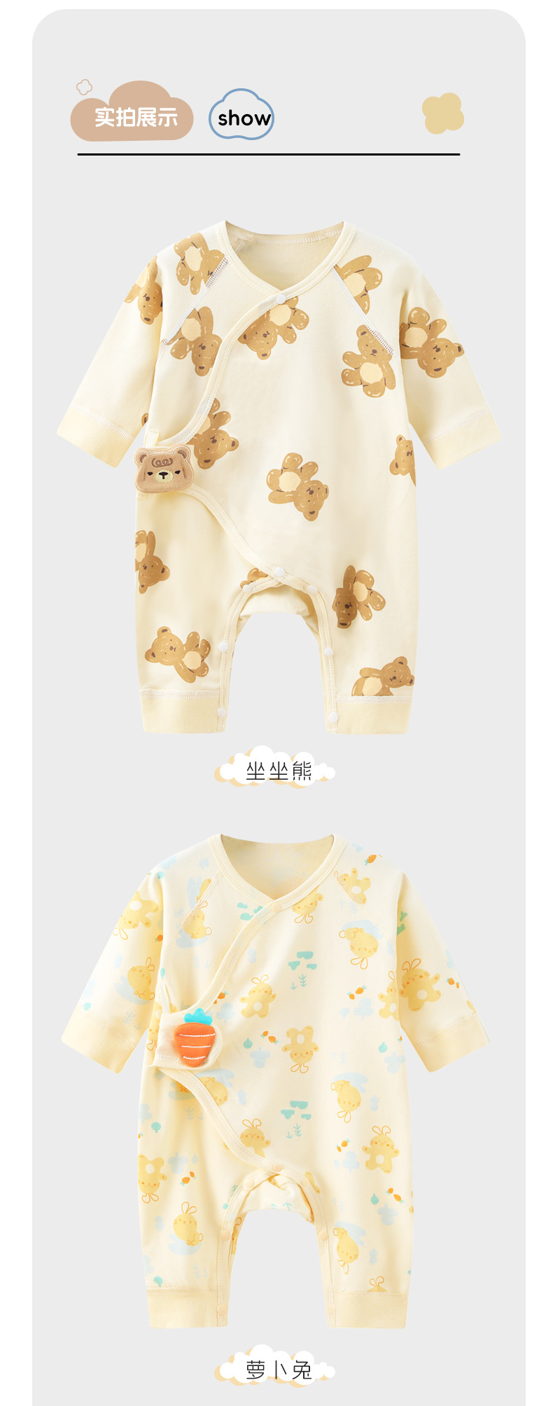 신생아 순면 배꼽 보호 옷 뼈없는 보름달 아기 옷 신생아 아기 나비 옷 등반 옷 몽크 옷스토어 가기