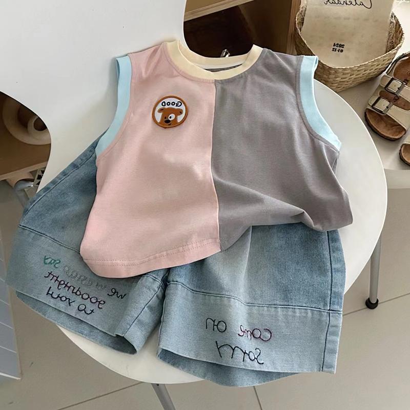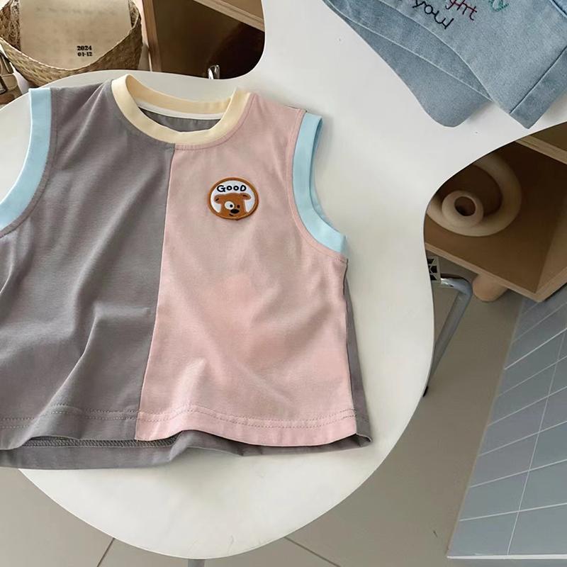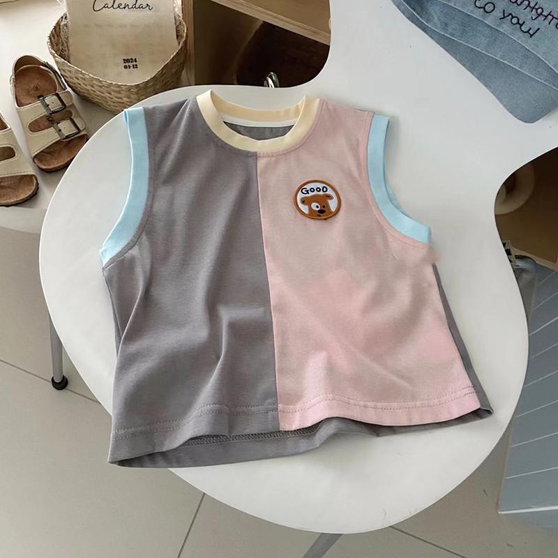 한국 아동복 아동 조끼 아기 24 여름 옷 소년 소녀 서양식 캐주얼 다목적 배색 민소매 티셔츠