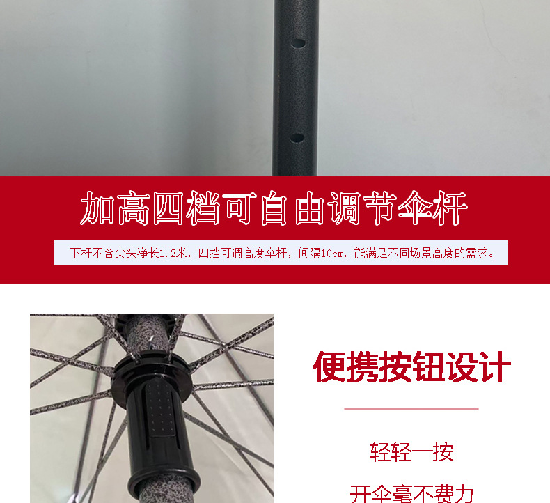 • 2.4m + 3겹 방풍 프레임 + 단일 레이어 420D 레드 옥스포드 실버 테이프