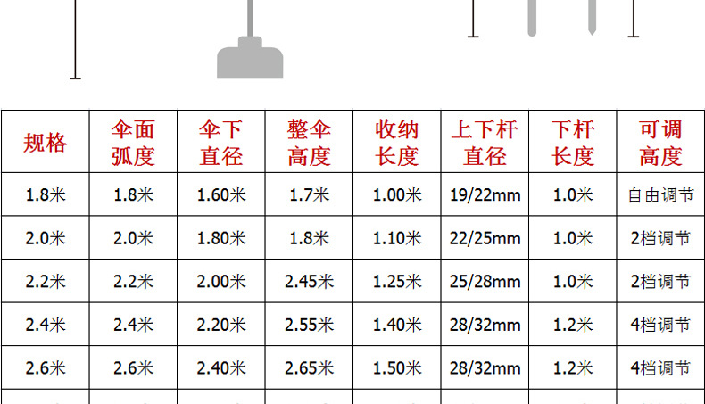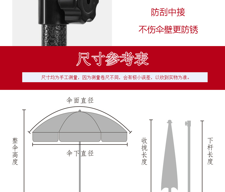 • 2.6m + 3겹 방풍 프레임 + 이중 420D 레드 옥스포드 실버 테이프