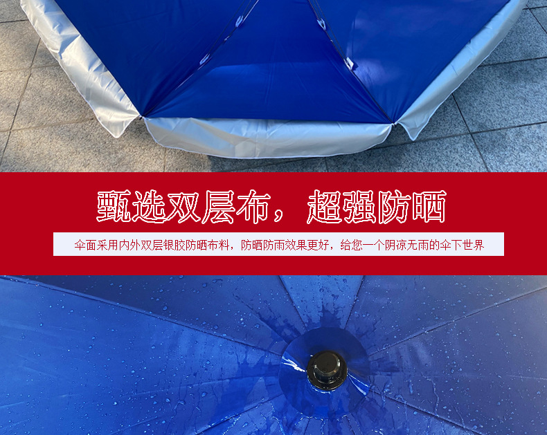 • 2.8m + 3겹 방풍 프레임 + 단일 레이어 420D 블루 옥스포드 실버 테이프