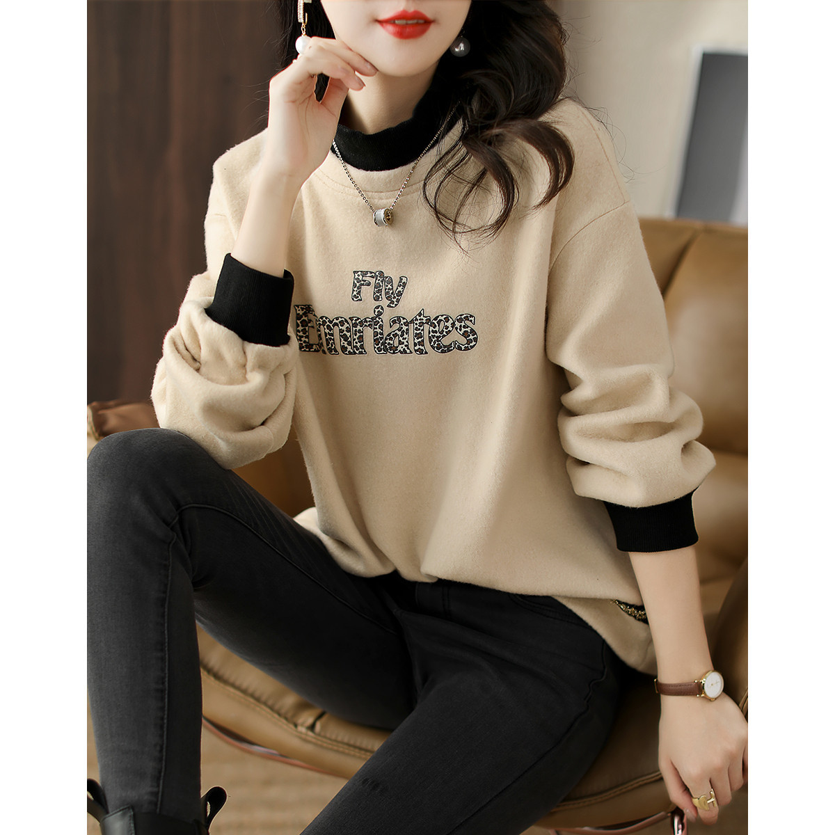 2023 년 겨울 새 패션 한국 느슨한 두꺼운 크루 넥 편지 가짜 투피스 패션 여성 스웨터스토어 가기