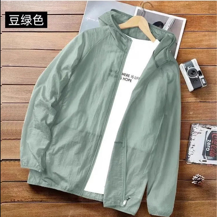 아이스 실크 얇고 통기성이 뛰어난 남성용 여름 자외선 차단 의류, 루즈하고 시원한 후드 재킷, 트렌디한 남성 캐주얼 스킨 의류