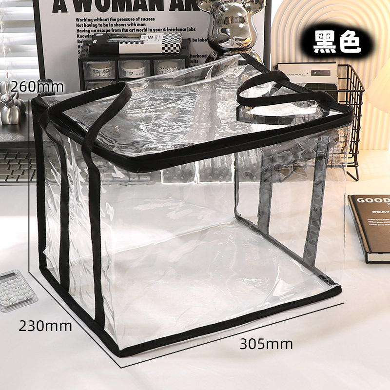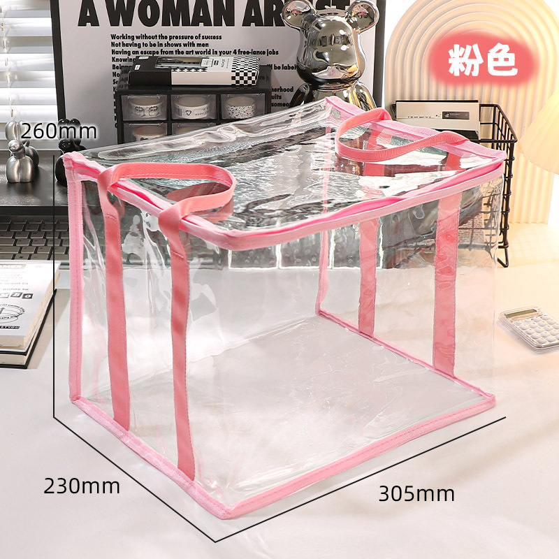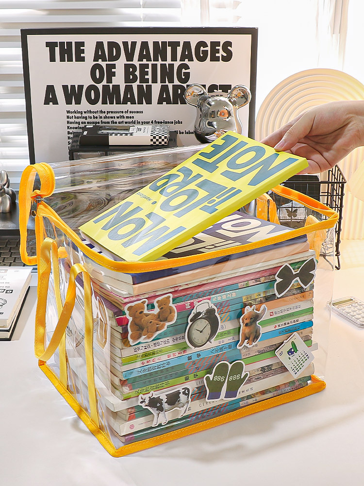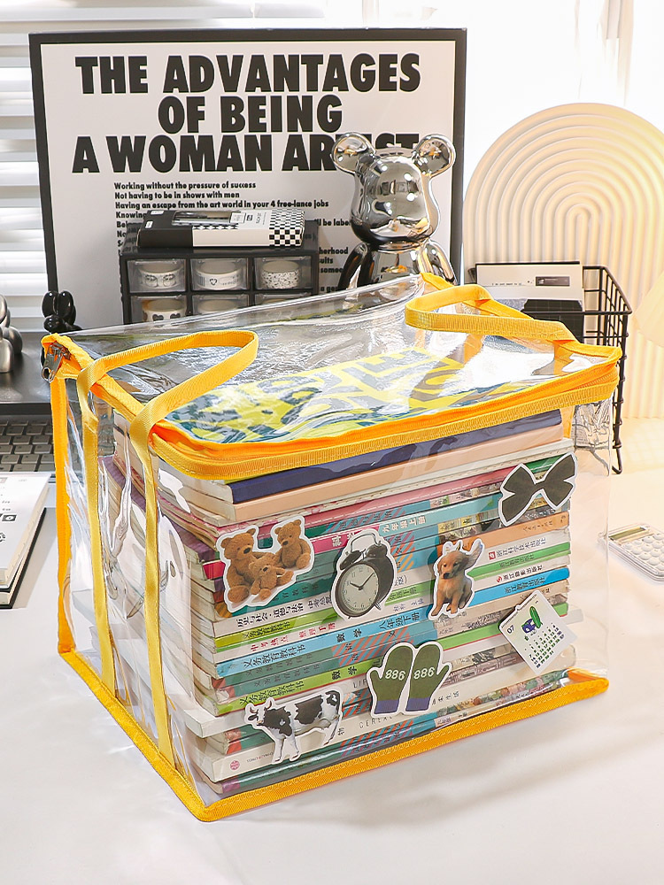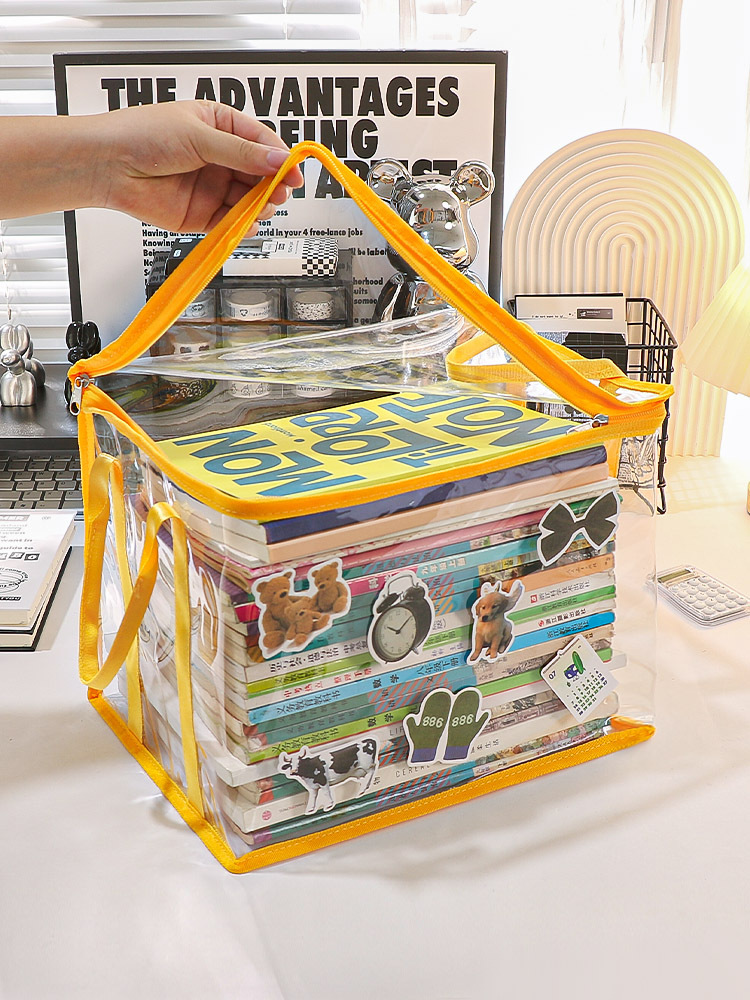 투명한 접는 학생 책 방진 가방 학교 용품 책장 적합 바구니 휴대용 저장 파일 저장 상자