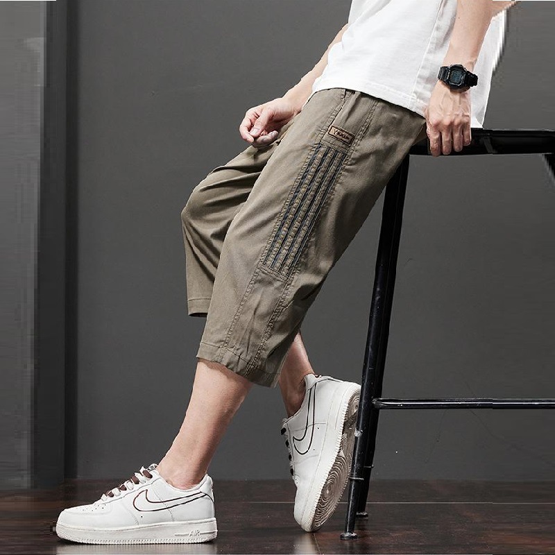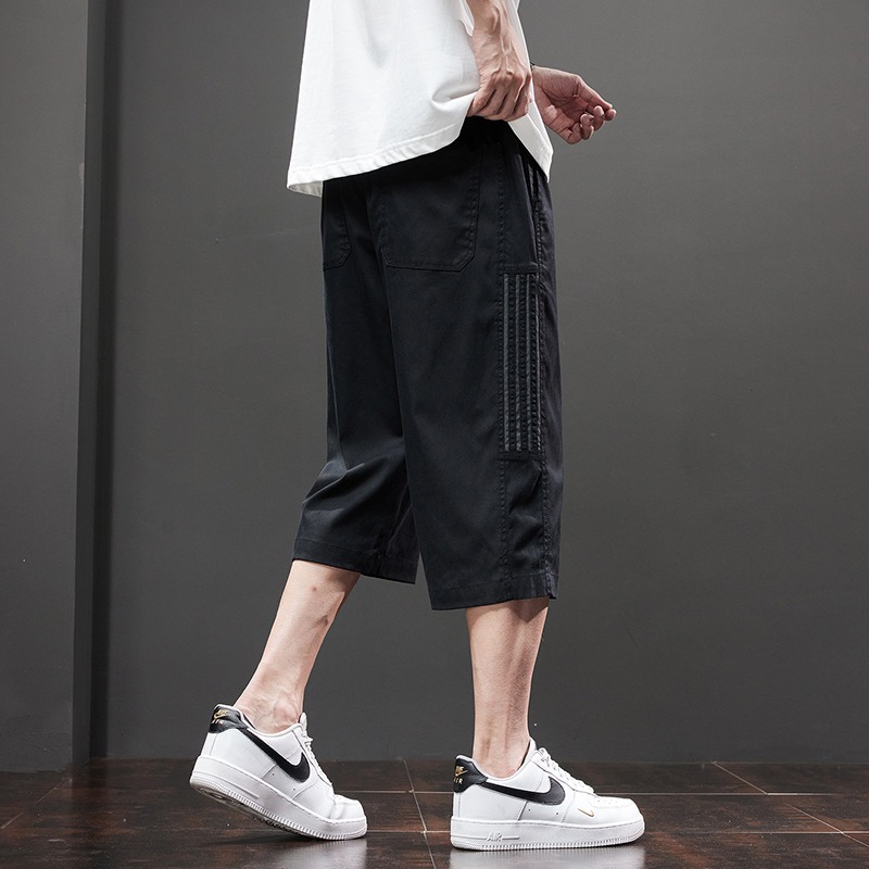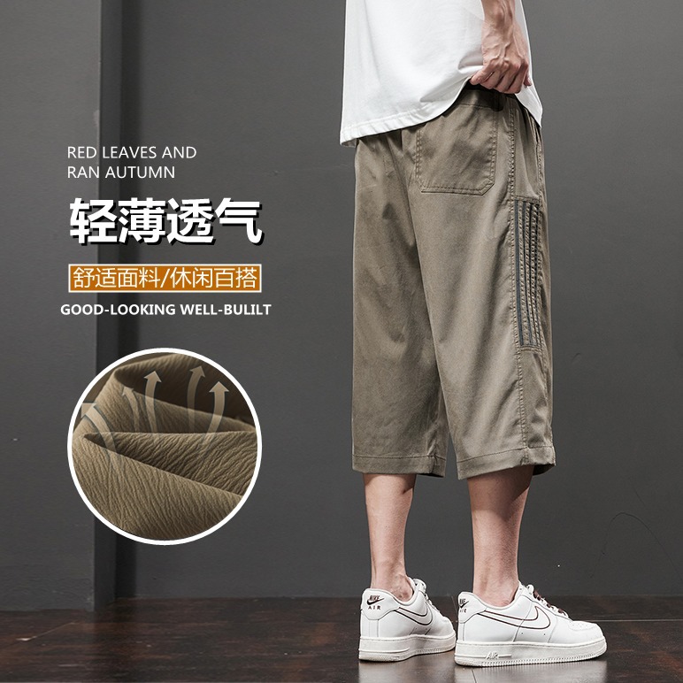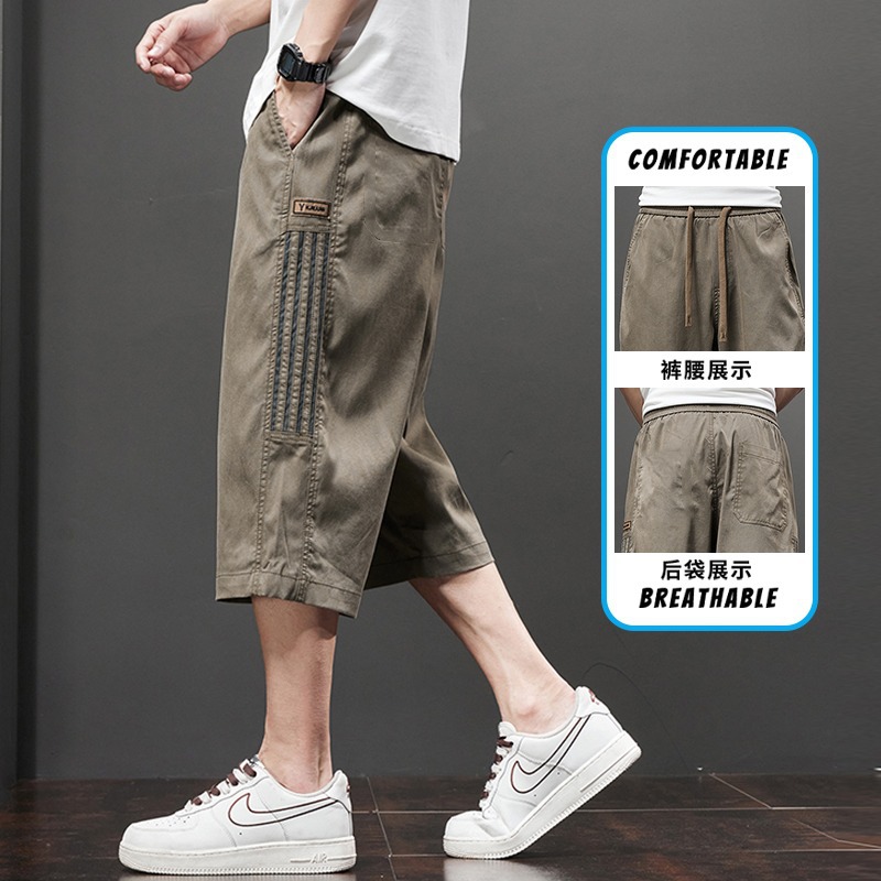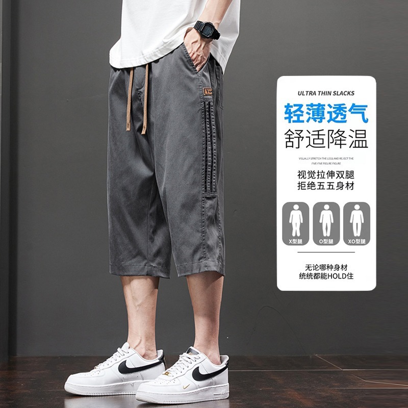아이스 실크 자른 반바지 남성 여름 얇은 2024 새로운 남성 느슨한 캐주얼 남성 바지 착용 방지스토어 가기