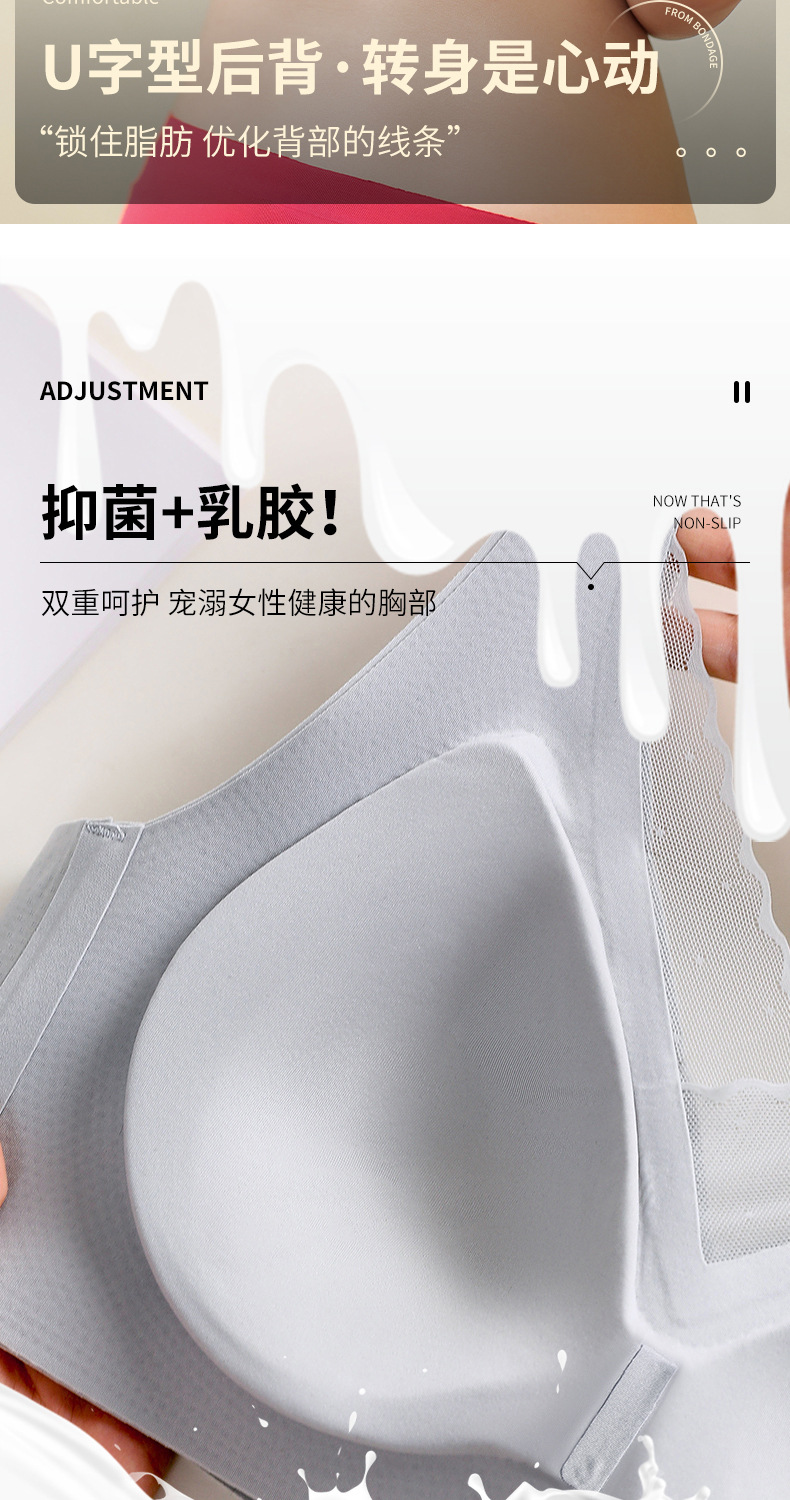 여성용 심리스 리프팅 라텍스 속옷, 푸쉬업, 보조 유방, 처짐 방지, 일체형 스포츠 브라, 고정 컵