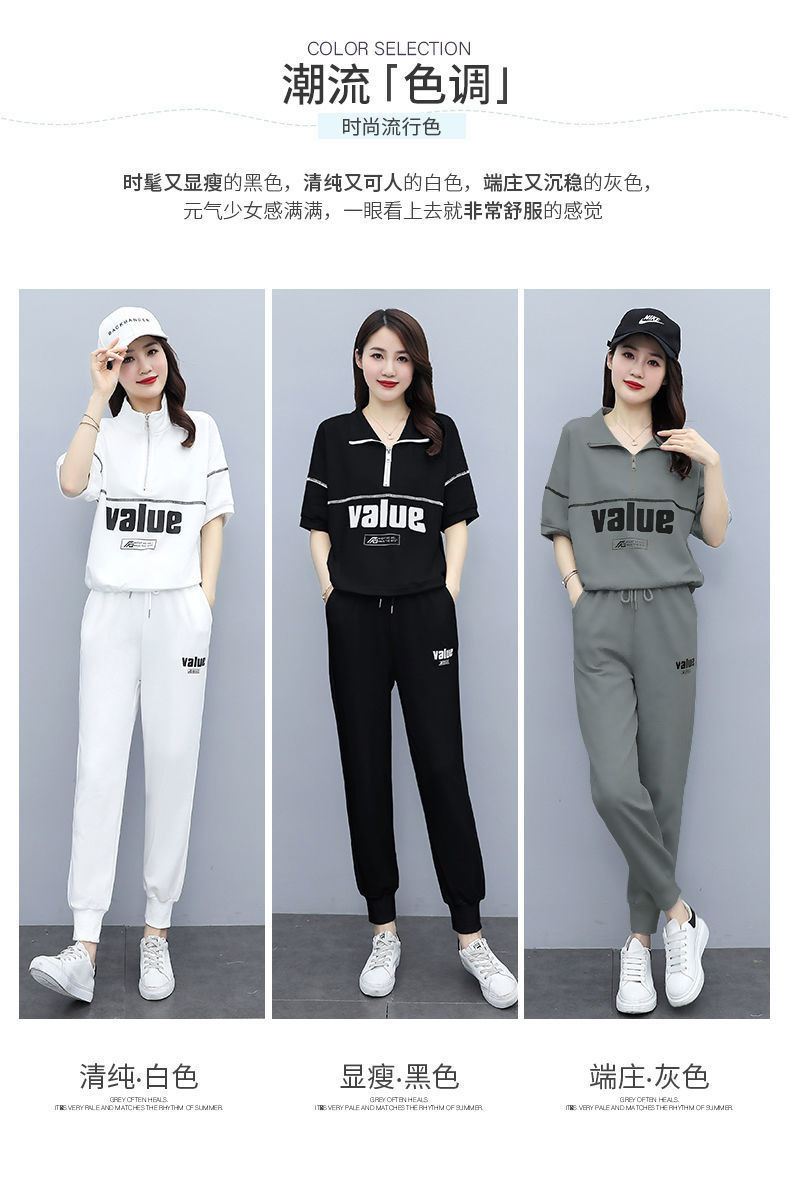패션 캐주얼 세트 여성 2024 년 여름 새 한국식 반팔 자른 할란 팬츠 플러스 사이즈 투피스 세트스토어 가기