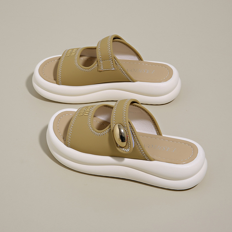 두꺼운 단독 크로스 보더 샌들 2025 새로운 벨크로 샤넬 스타일 편지 슬리퍼 외부 비치 샌들 플랫 힐 샌들