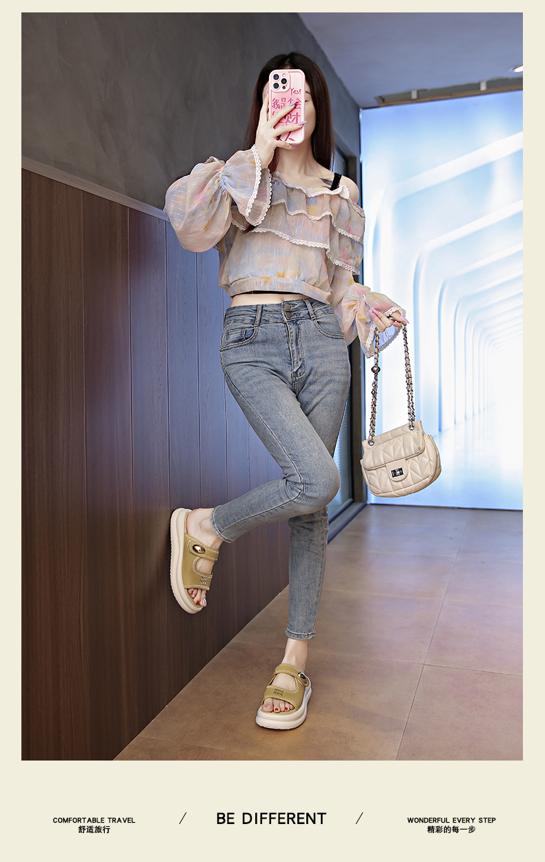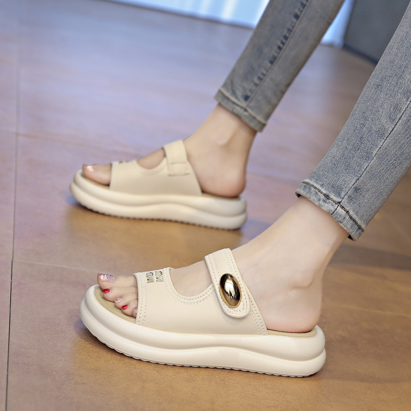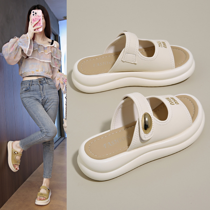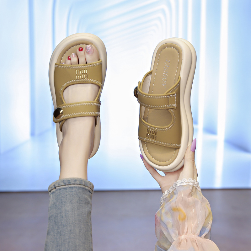 두꺼운 단독 크로스 보더 샌들 2025 새로운 벨크로 샤넬 스타일 편지 슬리퍼 외부 비치 샌들 플랫 힐 샌들스토어 가기