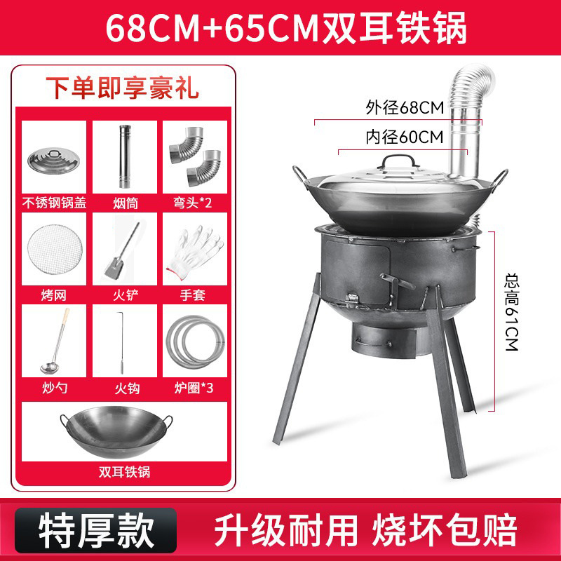 장작 난로 장작 철제 냄비 조림 치킨 스토브 농촌 철 난로 대형 철제 냄비 두껍게 요리 보일러