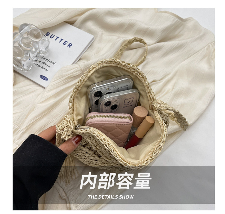 새로운 스타일 밀짚 술 보름달 가방 종이 로프 크로 셰 뜨개질 가방 메이크업 동전 지갑 짠 캐주얼 라운드 축구 여성 가방스토어 가기