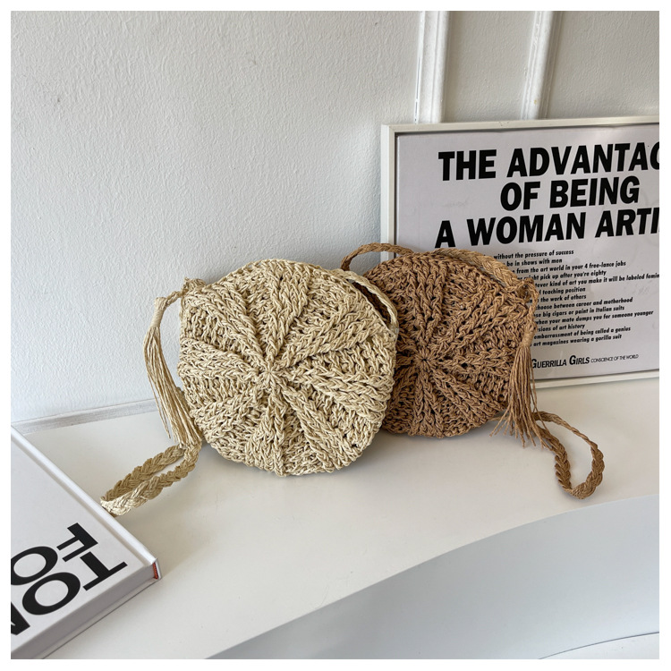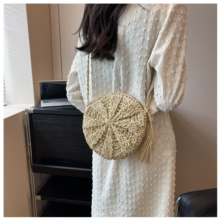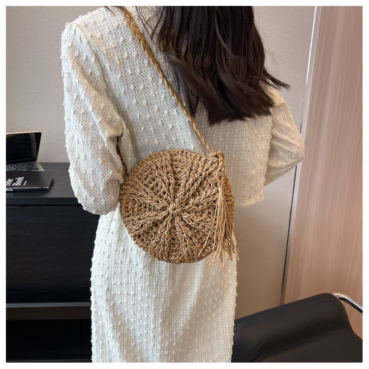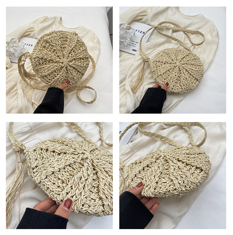 새로운 스타일 밀짚 술 보름달 가방 종이 로프 크로 셰 뜨개질 가방 메이크업 동전 지갑 짠 캐주얼 라운드 축구 여성 가방