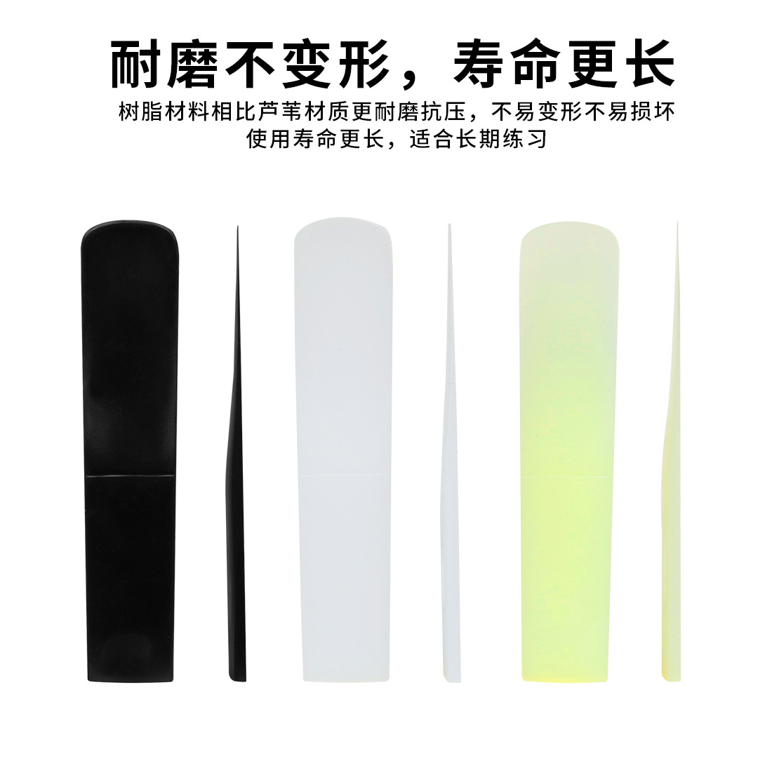 用途卖点:采用优质中等硬度树脂打磨而成,表面光滑美观。演奏舒适,该款哨片材质更具弹性,使用寿命更长,演奏音色丰富。每一片哨片带有独立哨片夹,最大避免磕碰等情况对哨片造成伤害,收纳更贴心。哨片规格:2.5号
