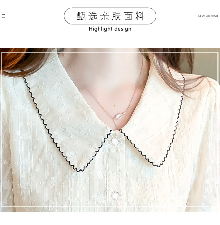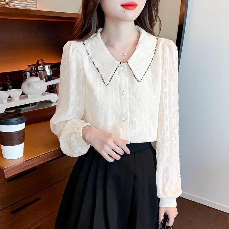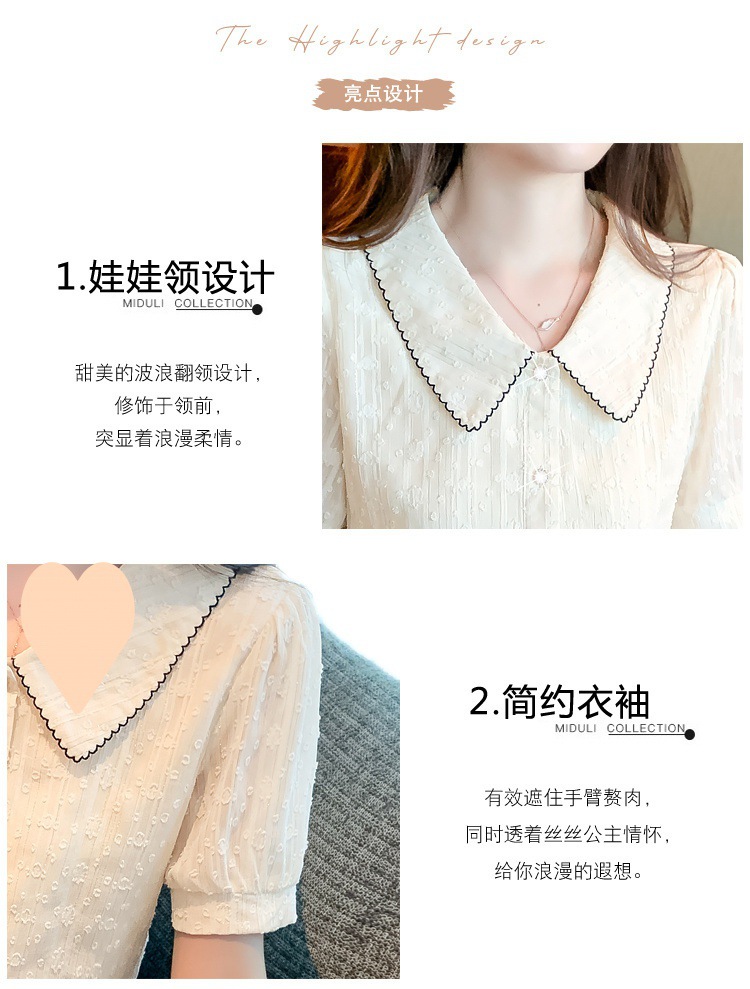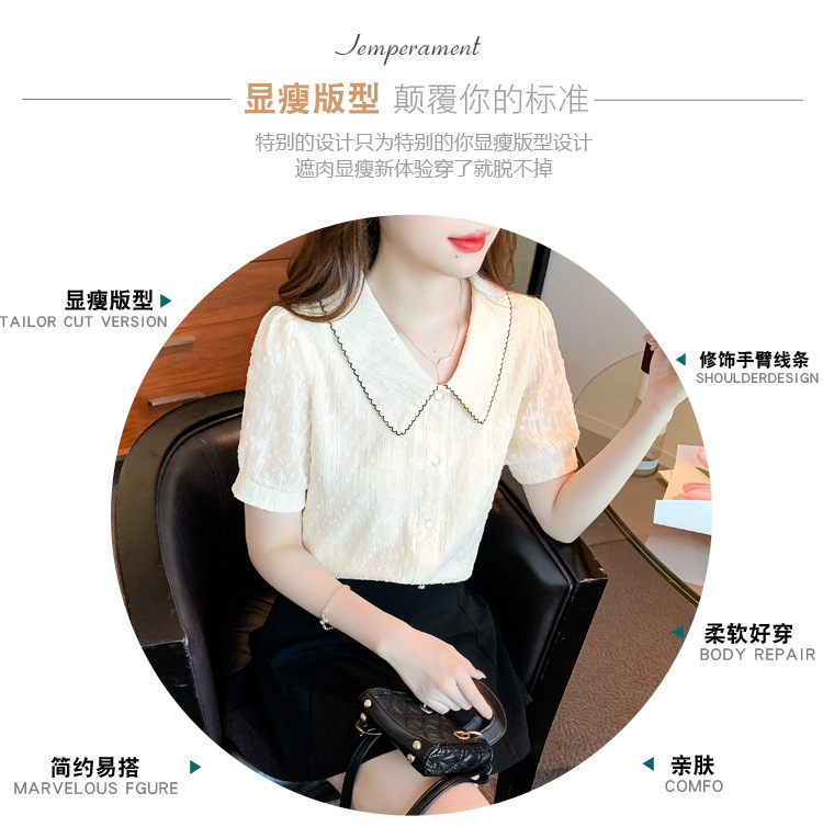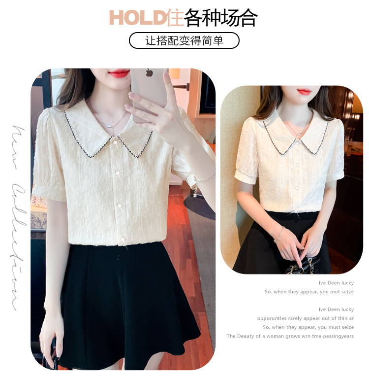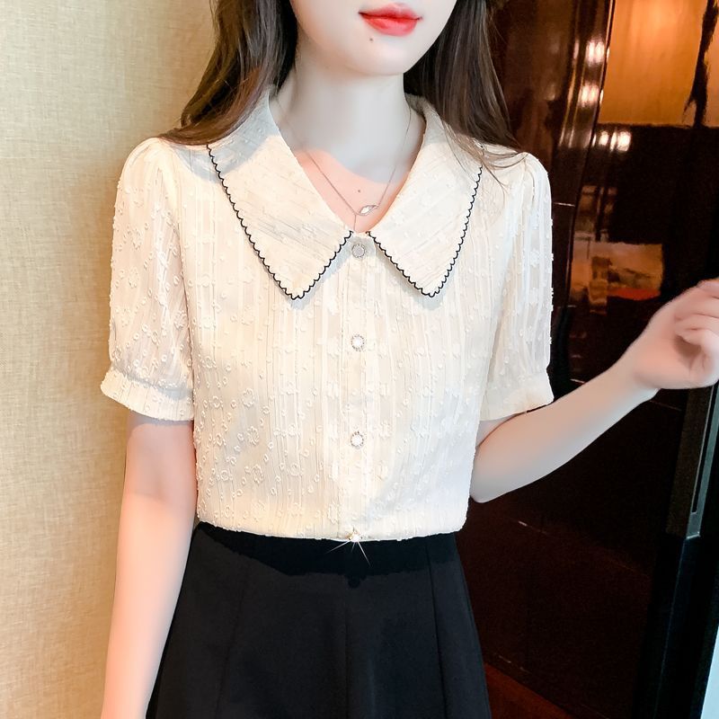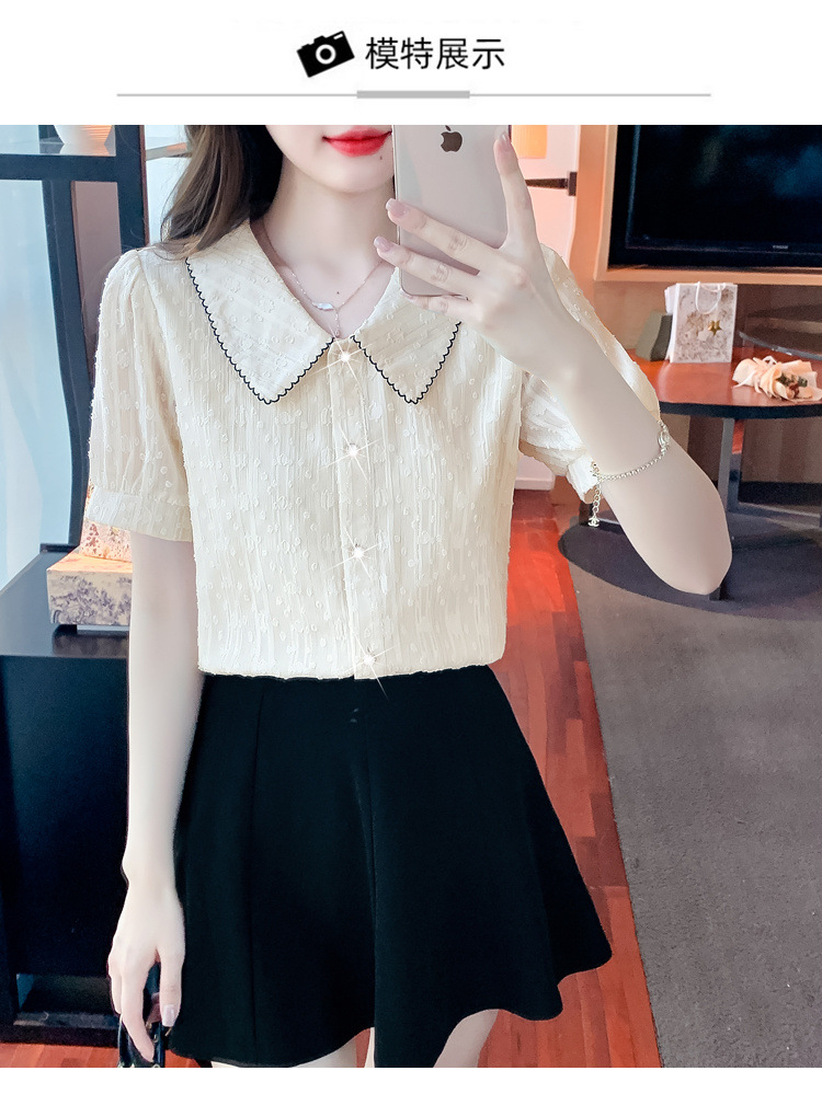2025년 여름 여성을 위한 쉬폰 셔츠 반팔 셔츠 새로운 스타일의 인형 칼라 탑 셔츠 시크하고 아름다운 셔츠스토어 가기