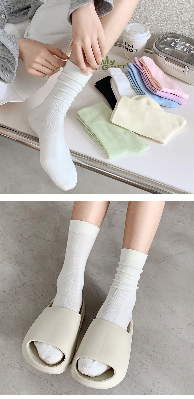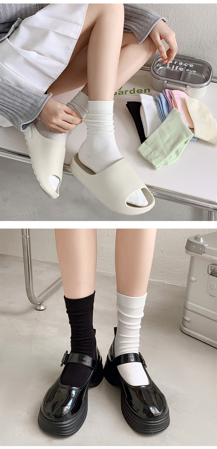 어린이를위한 흰색 포장 양말 여름 얇은 순수 컬러 코튼 Ins 유행 중추절 봄 및 가을 달 양말 블랙 스타킹스토어 가기