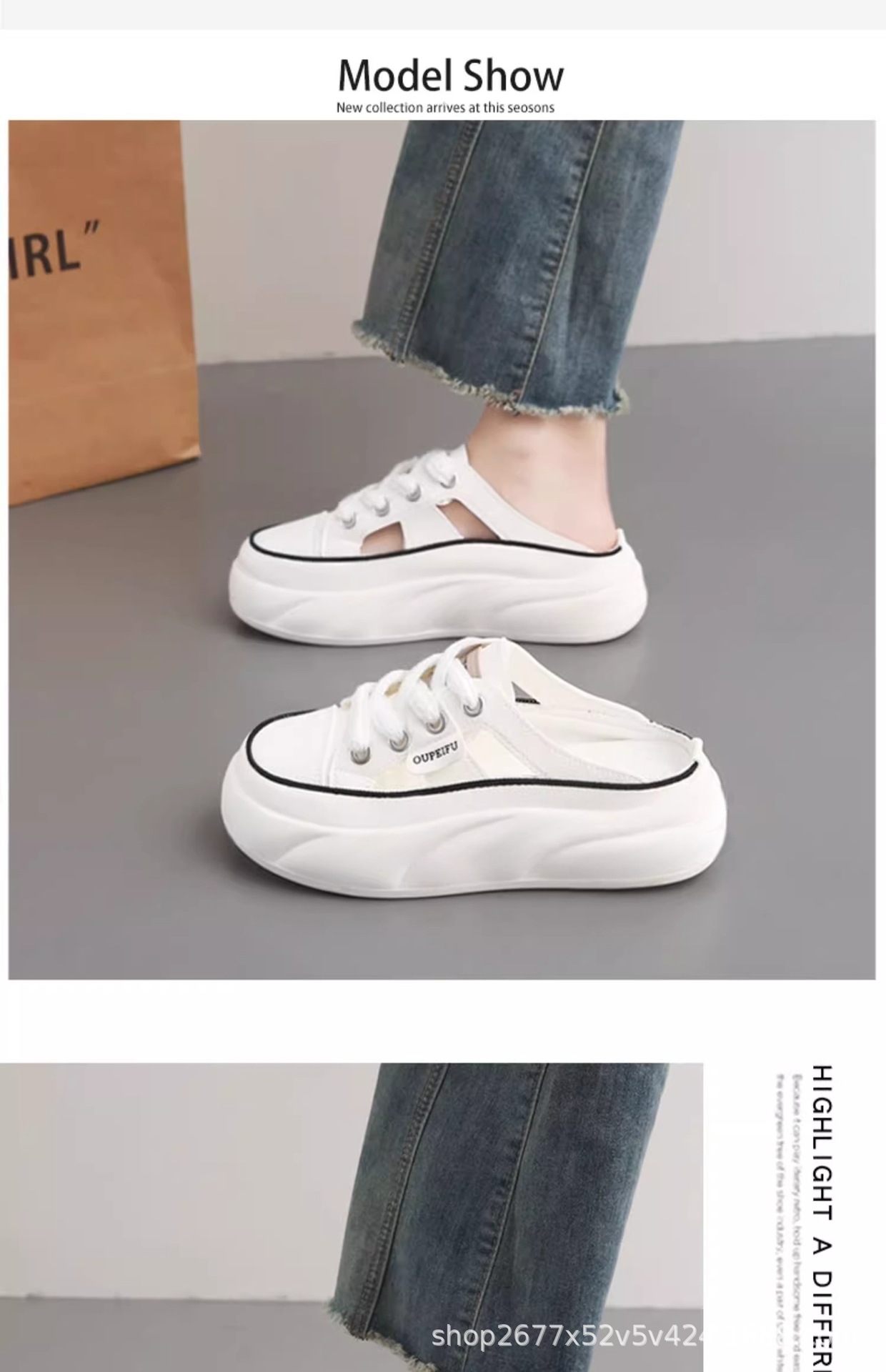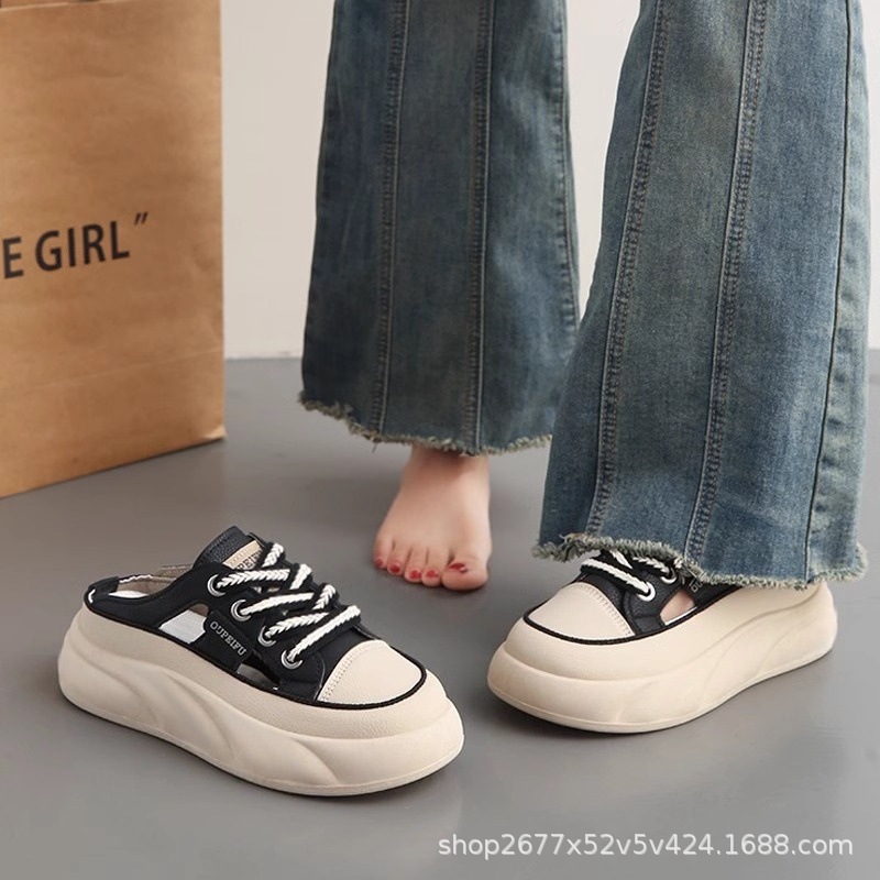 2025 새로운 스타일의 맞춤형 신발, 다재다능하고 패셔너블하며 클래식한 발가락 반슬리퍼, 중공 통기성 스포츠 여성 신발, 두꺼운 밑창스토어 가기