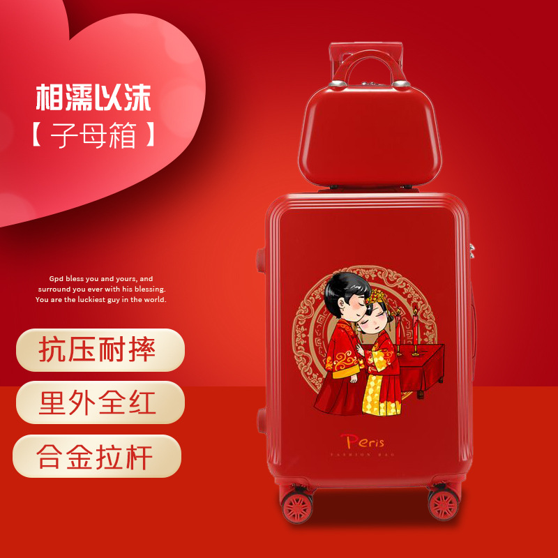 웨딩트렁크, 결혼식상자, 레드가죽상자, 신부트롤리케이스, 여성용 압착웨딩비밀번호 결혼상자, 한쌍
