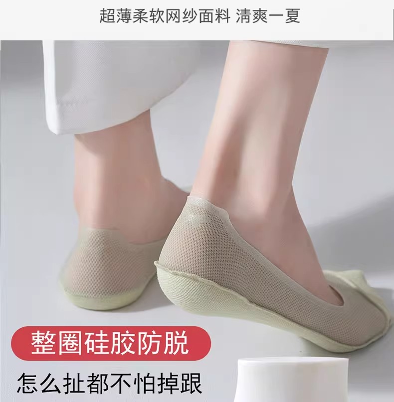 양말 여성용 아이스 메쉬 보트 양말 봄과 여름 얇은 보이지 않는 힐 떨어지는 새로운 패션 코튼 바닥 양말 미끄럼 방지 및 통기성