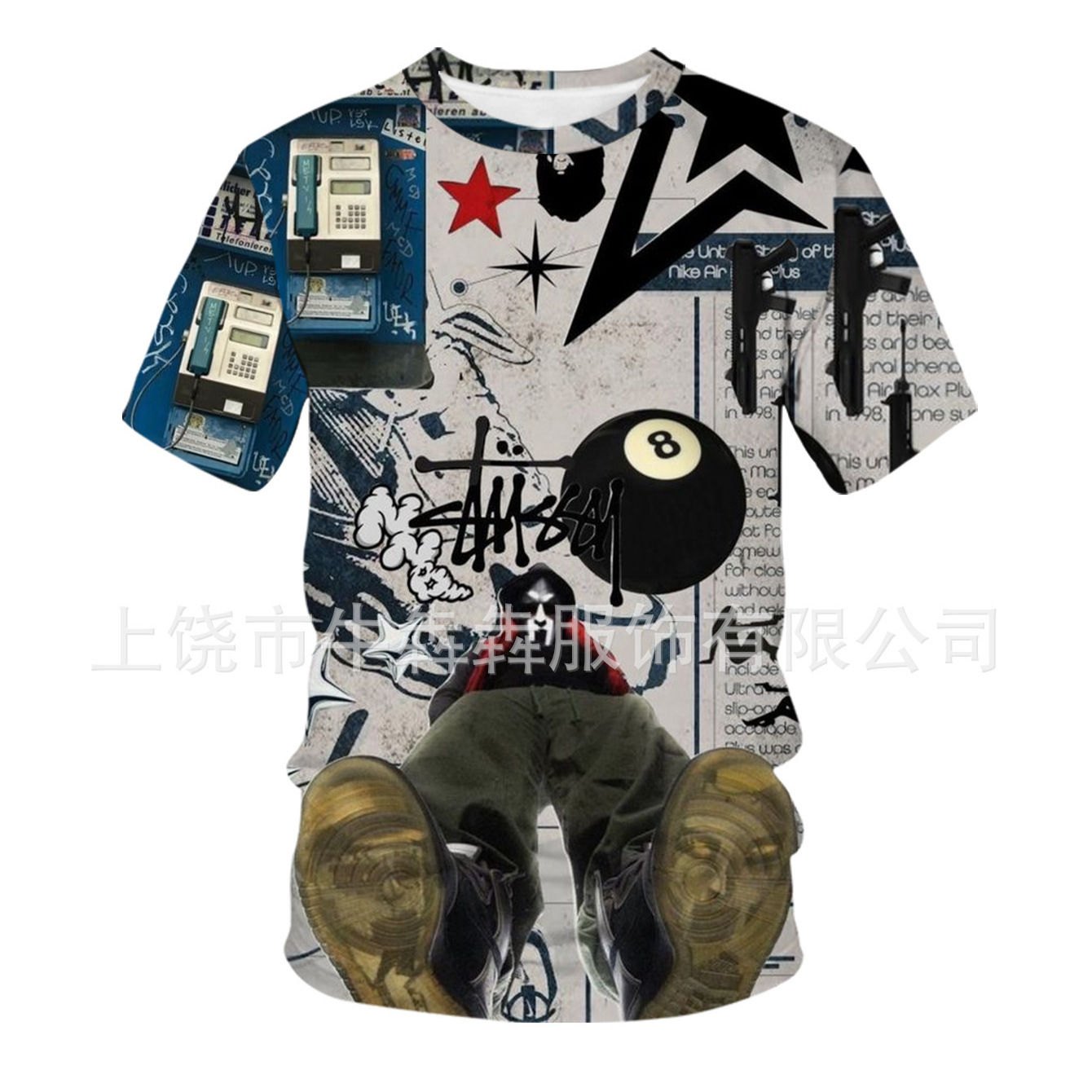 유럽과 미국의 국경 간 여름 새로운 당구 8 번호 3D 인쇄 특대 사이즈 느슨한 소년 캐주얼 패션 반팔 티셔츠스토어 가기