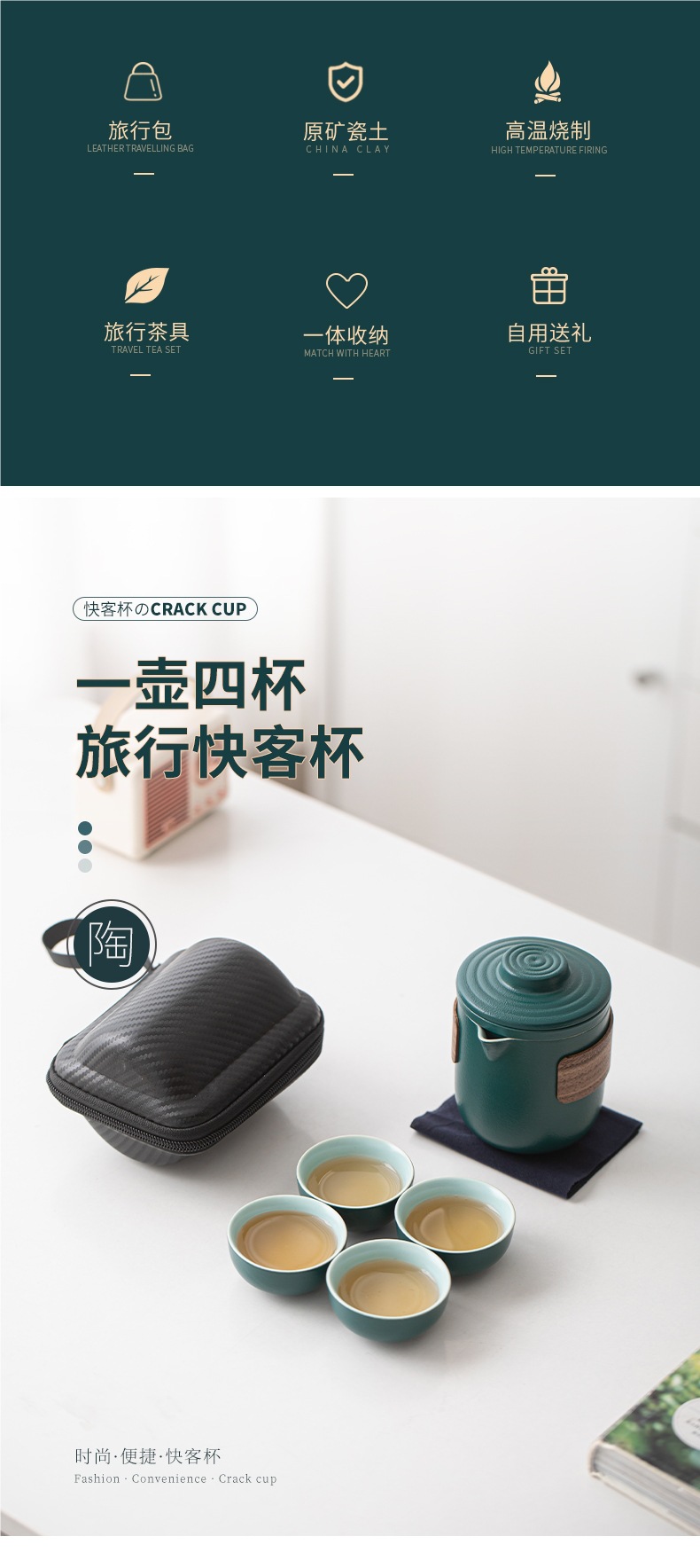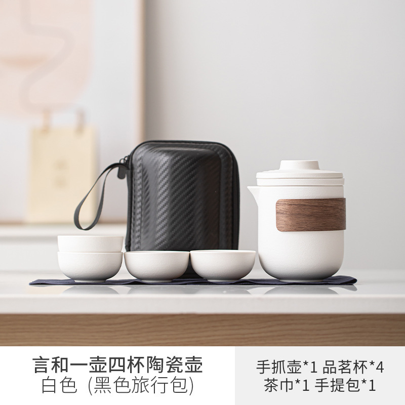휴대용 여행용 차 세트, 소형 세트, 야외 가방, 쿵푸 주전자, 찻잔, 1인용 퀵컵, 주전자 1개, 컵 2개 및 4개스토어 가기