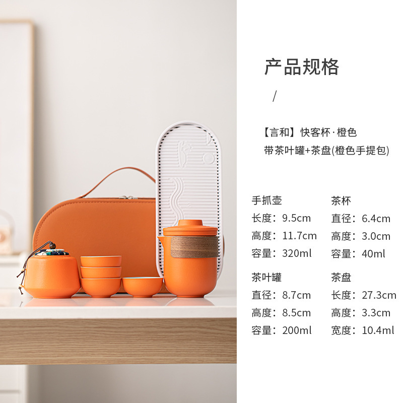 • 오렌지/옌허 냄비 4컵 + 차캔 + 차 트레이(도자기)
