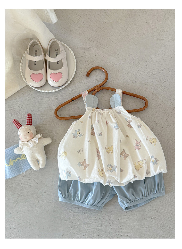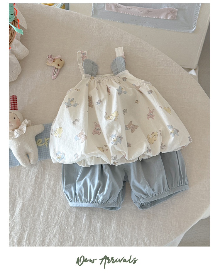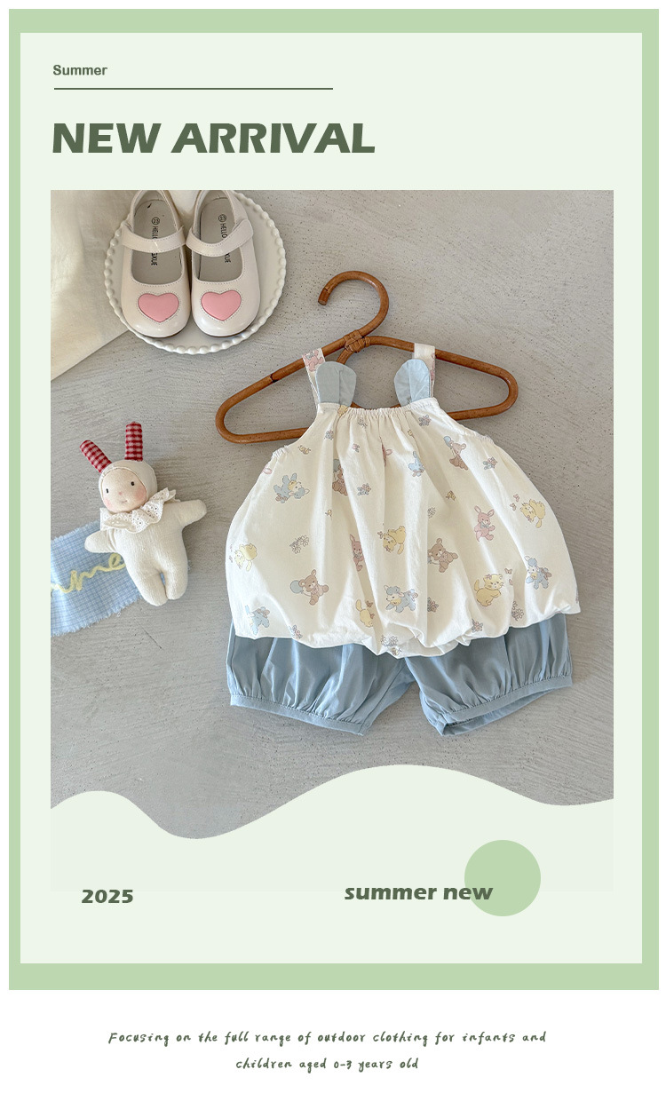 소녀 세트 여름 2025 새로운 도착 아기 소녀 슬링 탑 아기 반바지 여름 투피스 세트 얇은 카테고리 A스토어 가기