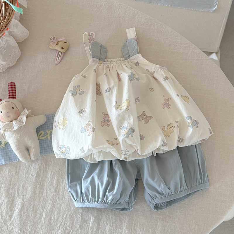 소녀 세트 여름 2025 새로운 도착 아기 소녀 슬링 탑 아기 반바지 여름 투피스 세트 얇은 카테고리 A