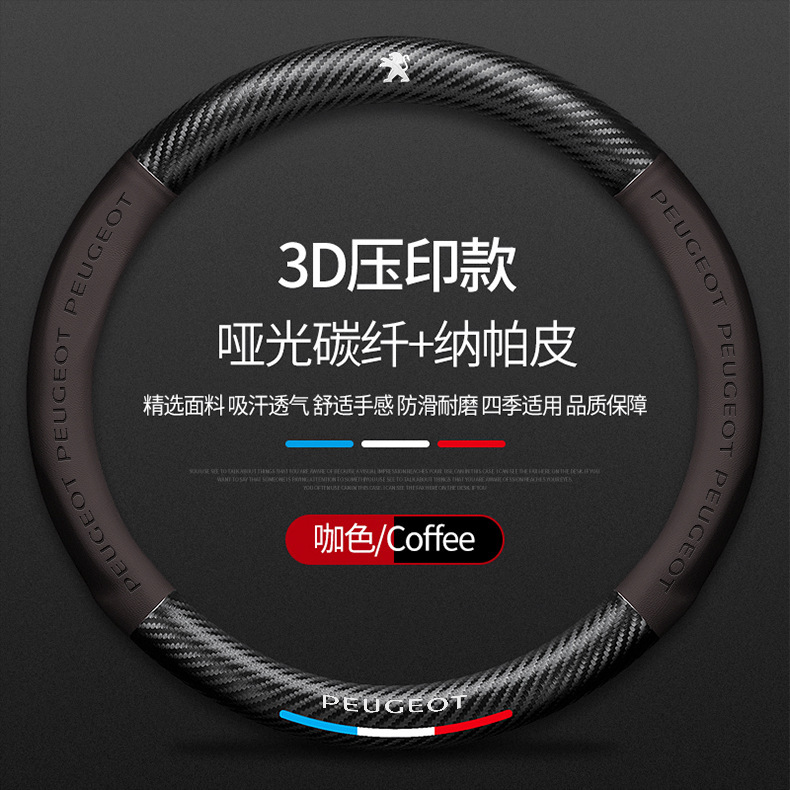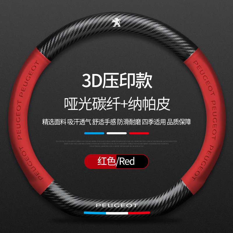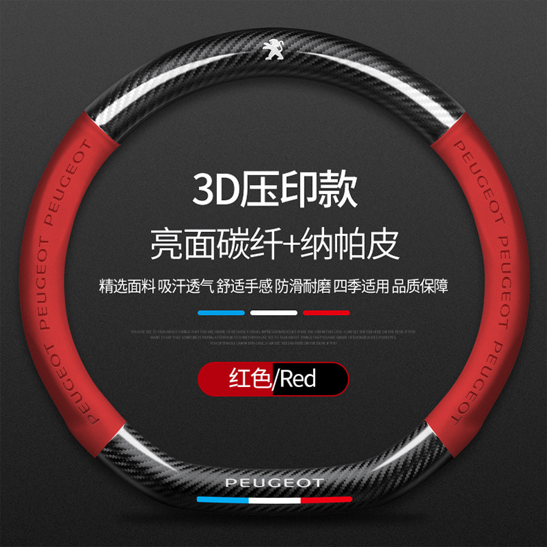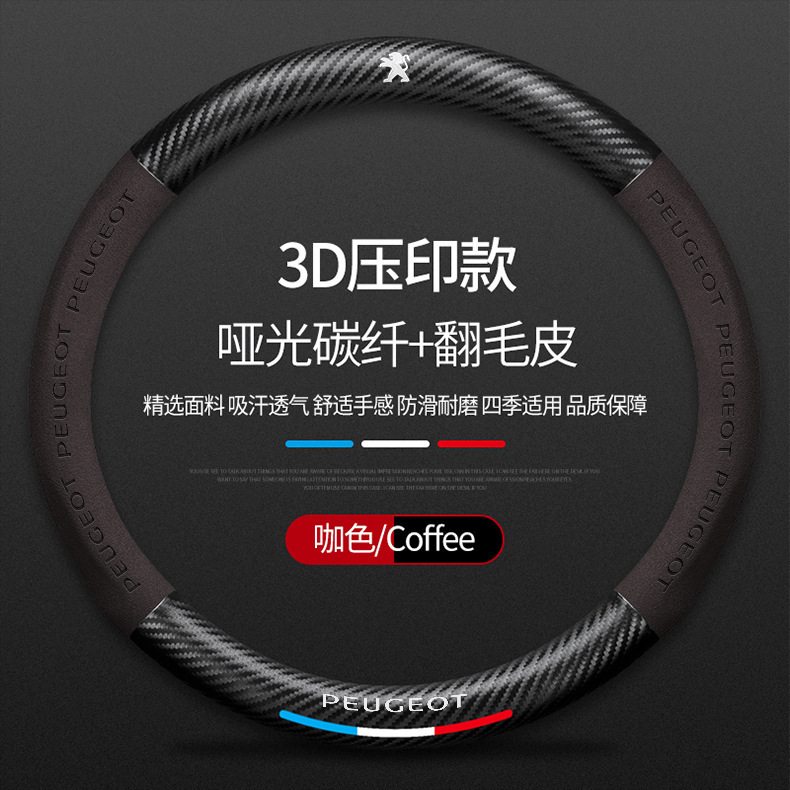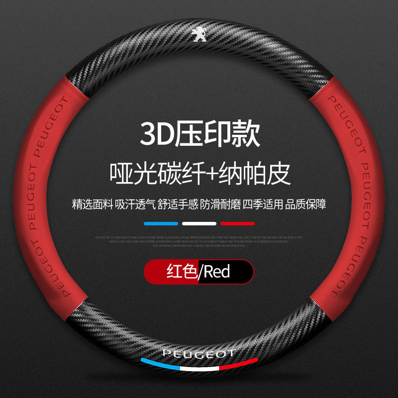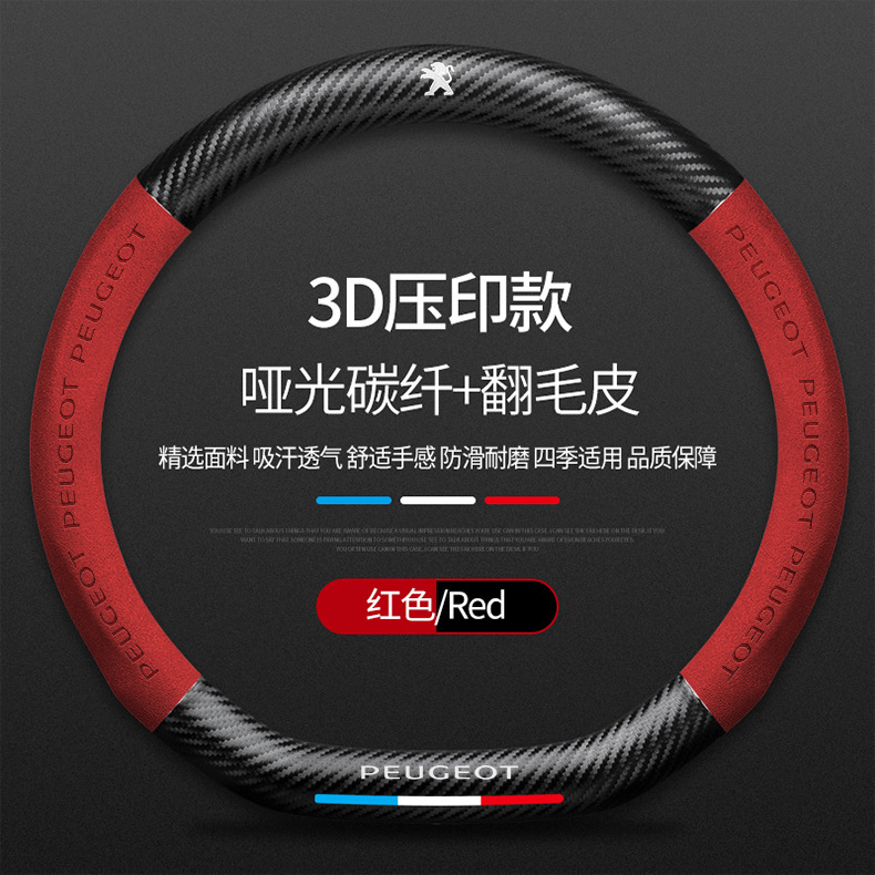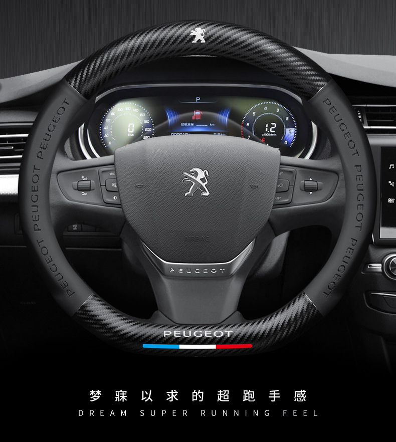 Dongfeng Peugeot 탄소 섬유 스티어링 휠 커버 308 408 X2008 5008 508L 스웨이드 자동차 핸들 커버에 적용 가능스토어 가기