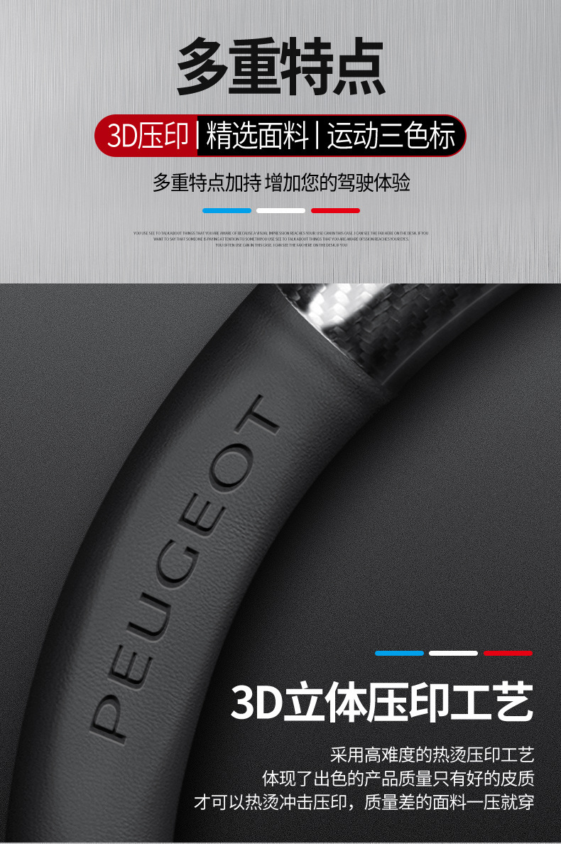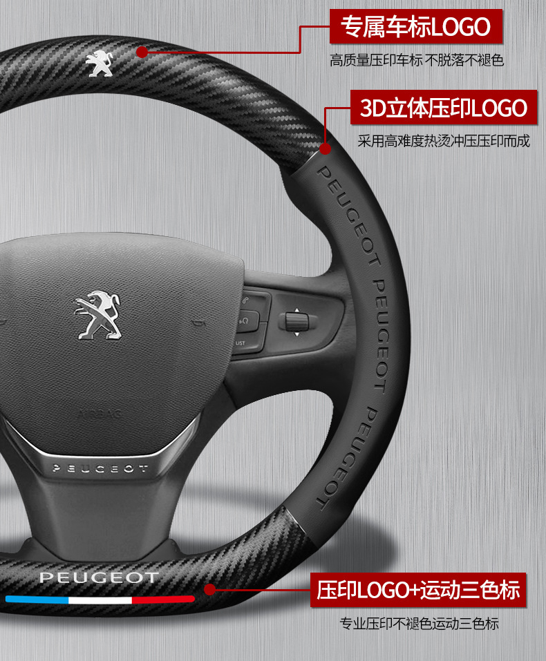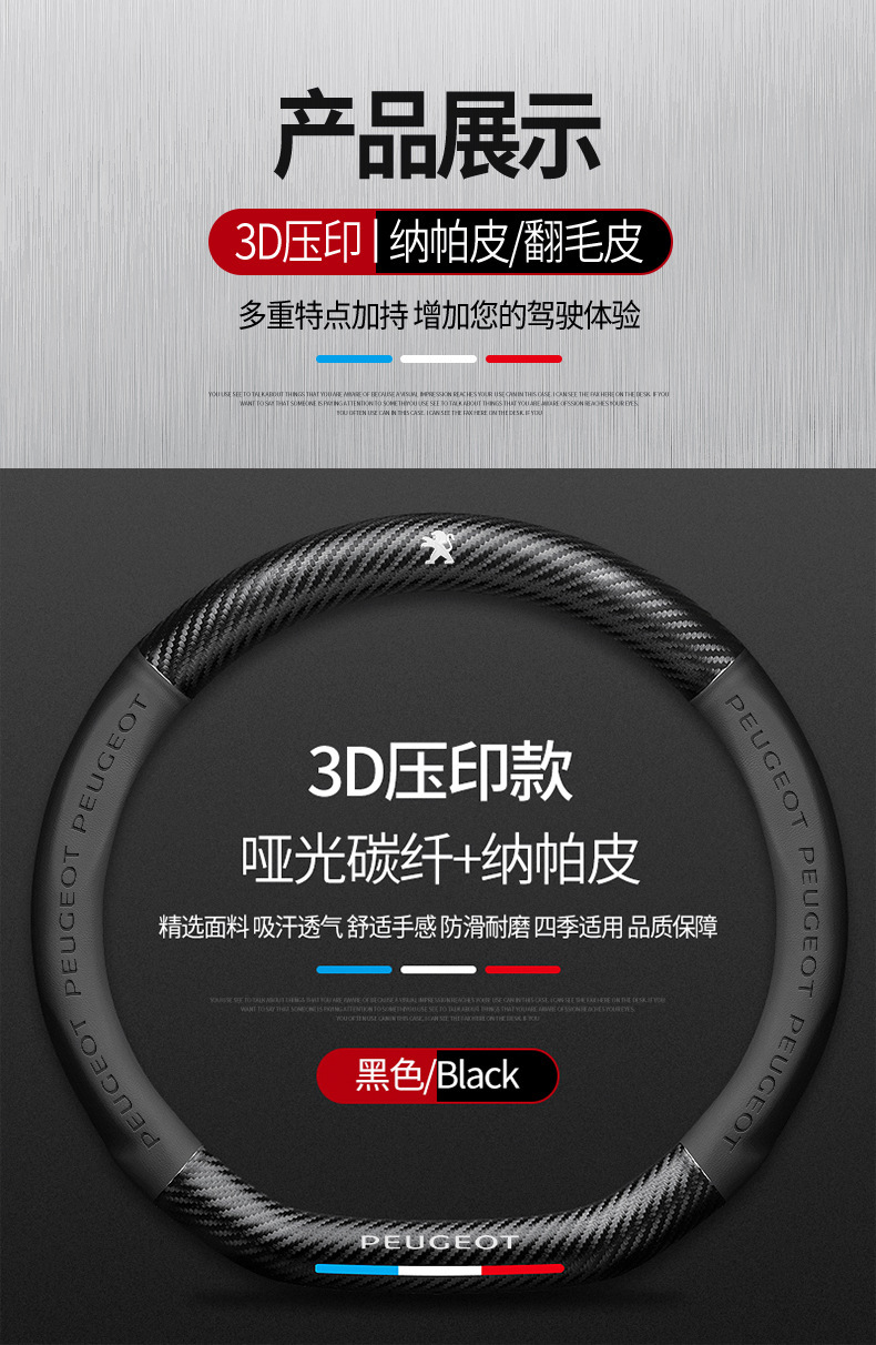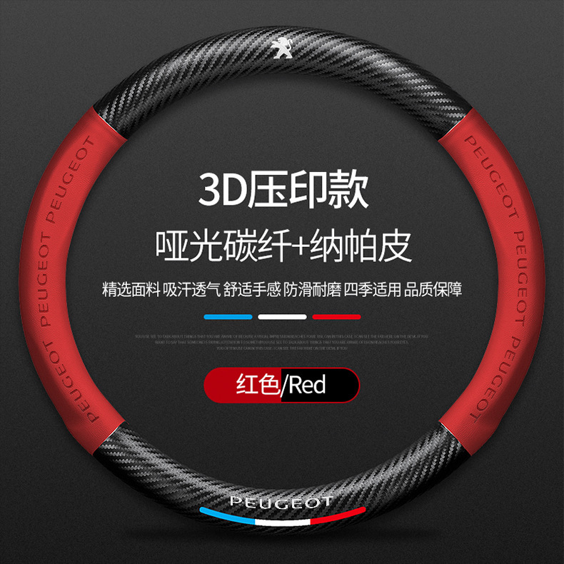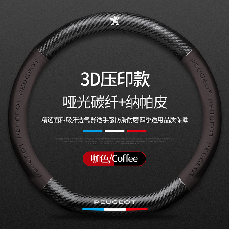 Dongfeng Peugeot 탄소 섬유 스티어링 휠 커버 308 408 X2008 5008 508L 스웨이드 자동차 핸들 커버에 적용 가능스토어 가기