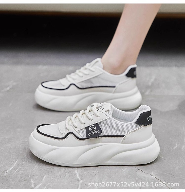 여성을위한 두꺼운 밑창 메쉬 통기성 흰색 신발 2025 여름 캐주얼 스포츠 신발 다목적 탈취제 슈퍼 부드럽고 편안한 여성 신발스토어 가기