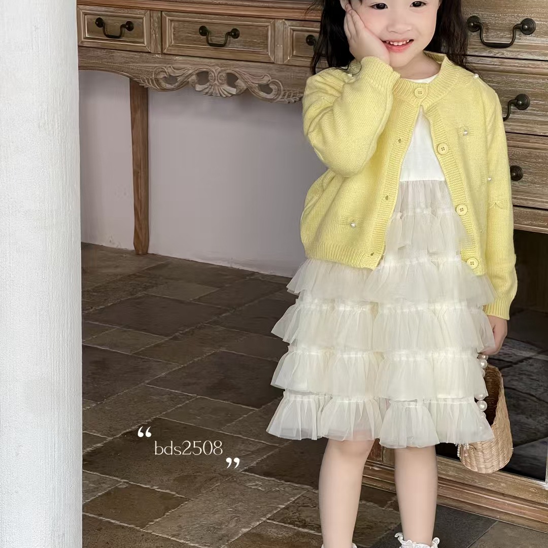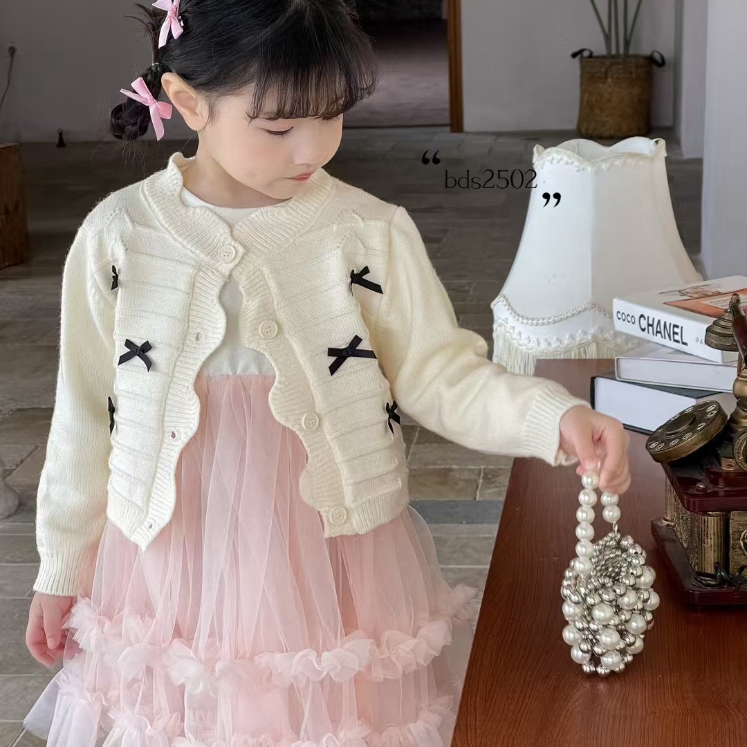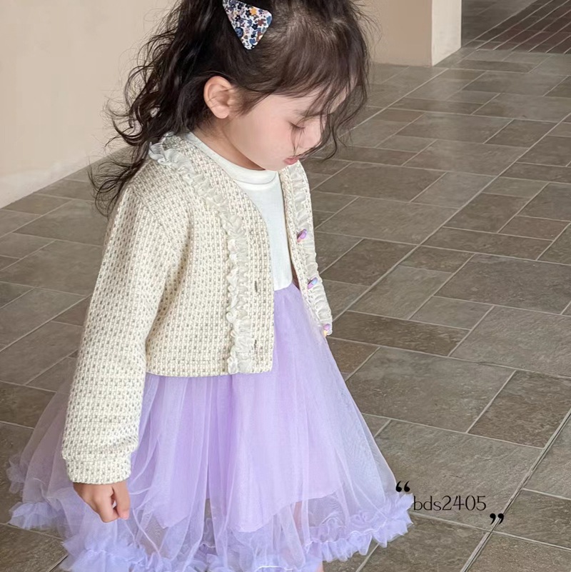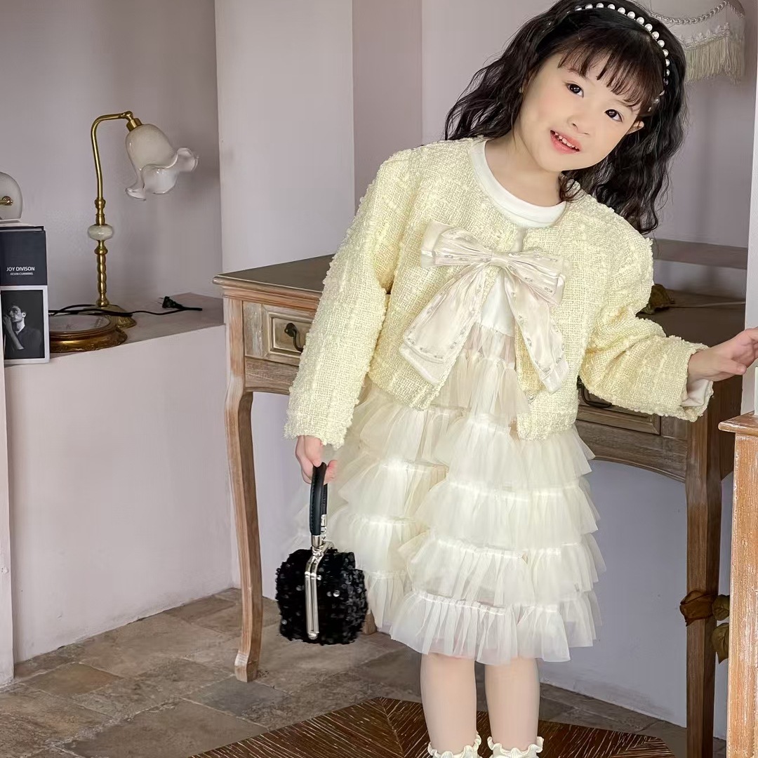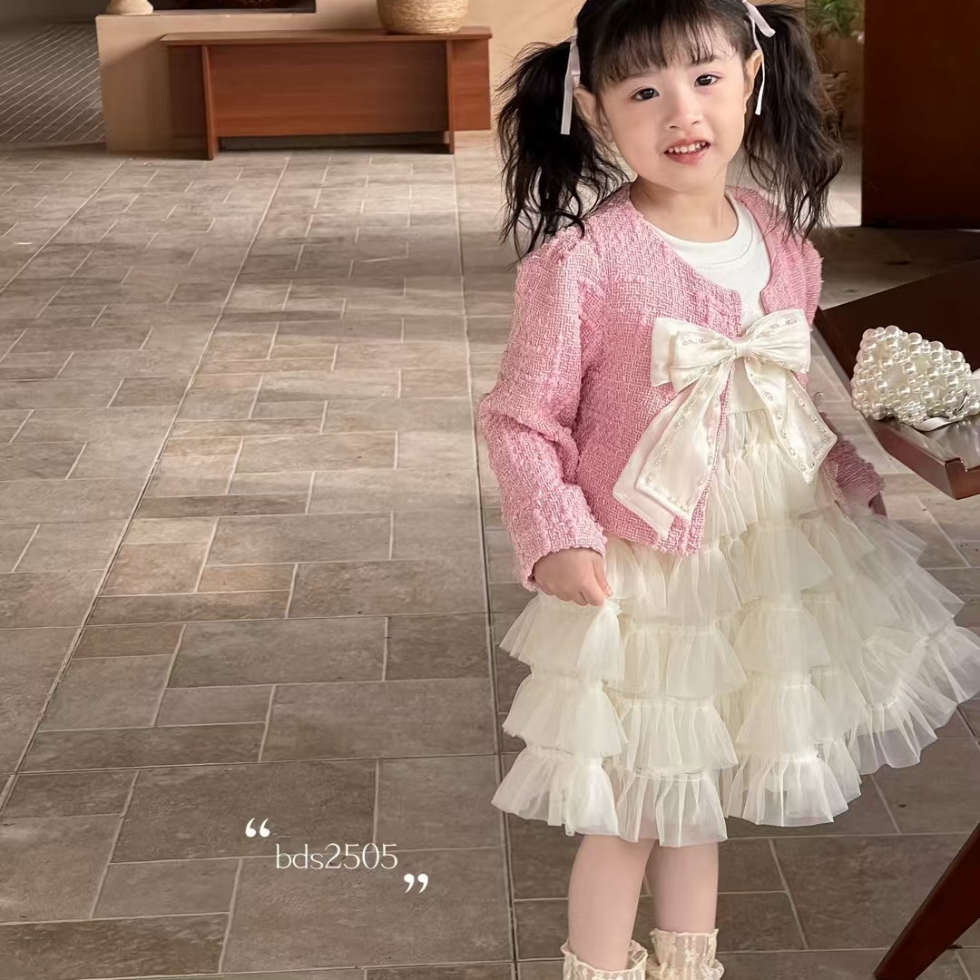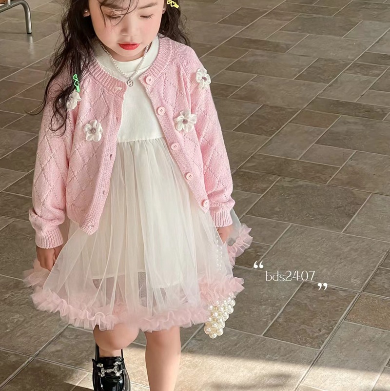2025女童连衣裙子春季连衣裙两件套童装布袋开衫香风外套针织衫스토어 가기